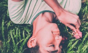 Wallpaper Boy in White and Green Crew-Neck T-shirt Lying on Ground
