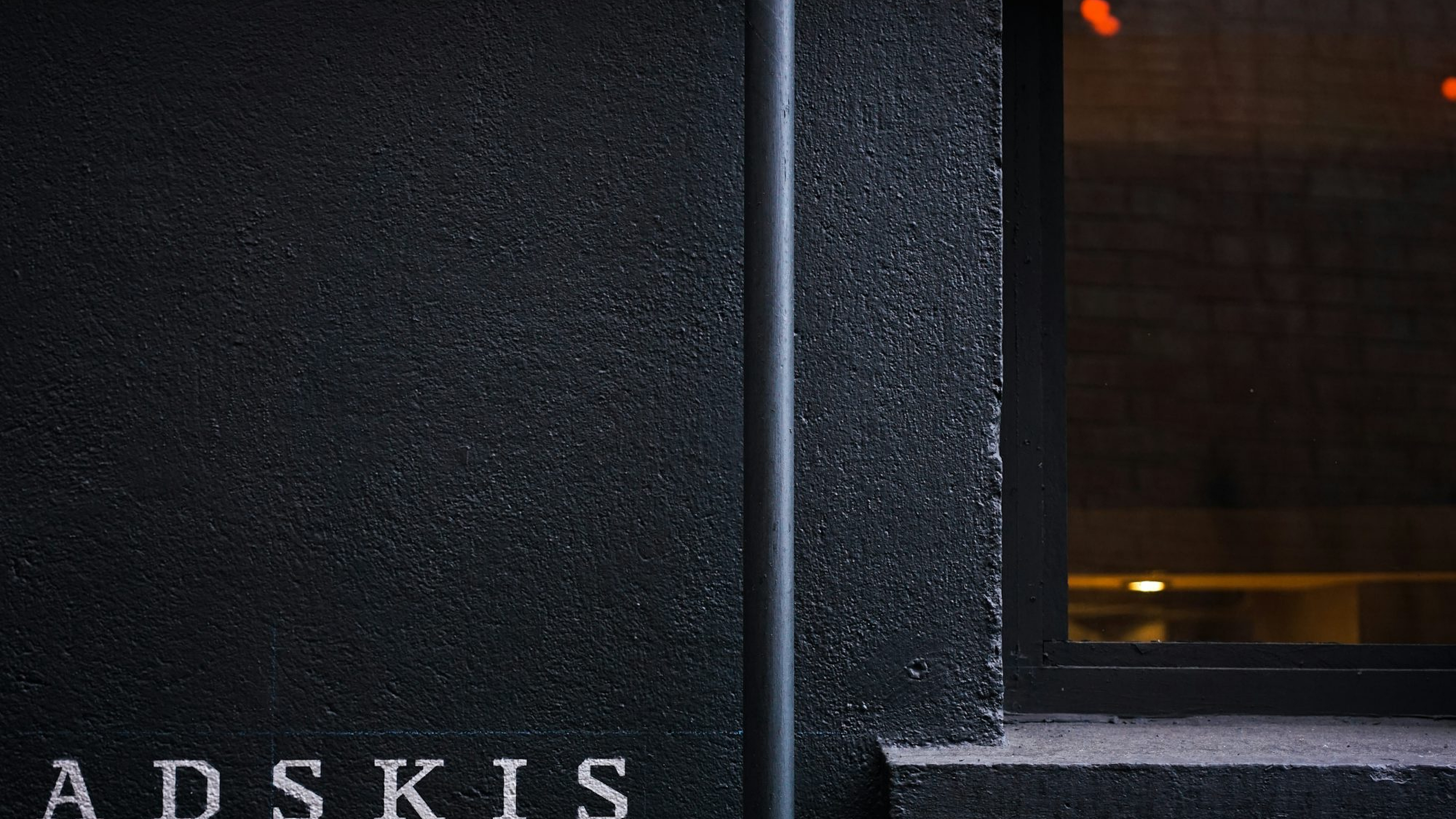 A minimalist wallpaper featuring a stark black building with a mysterious sign. Perfect for a sleek, modern desktop background.