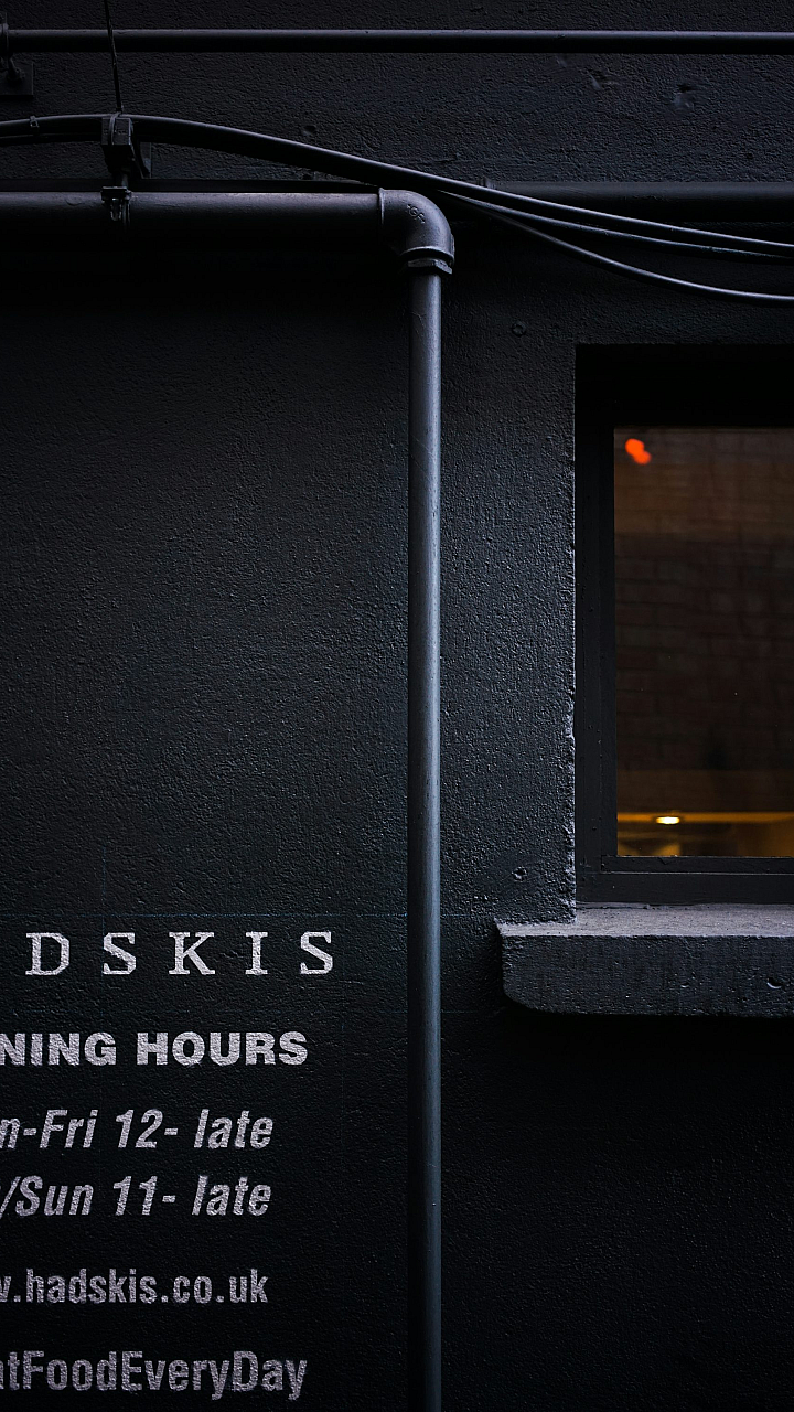 Wallpaper A Black Building with a Sign
