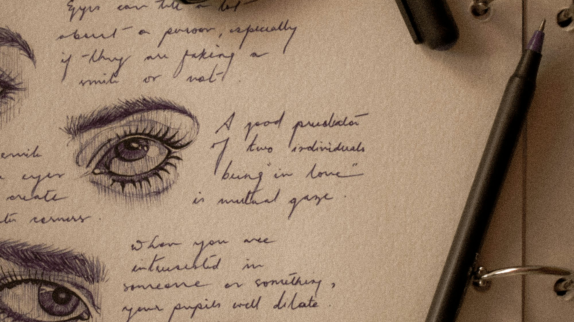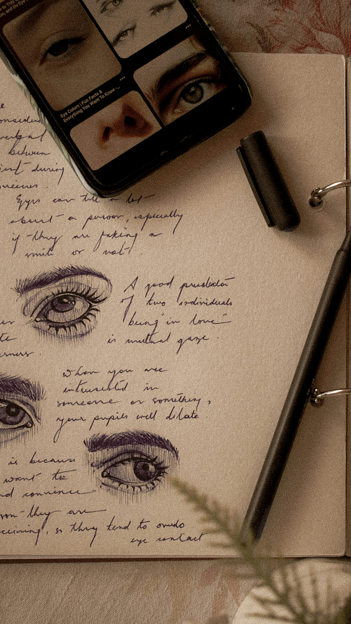 A minimalist wallpaper featuring a notepad, eyeliner pencils, and a cell phone. Clean lines and a subtle color palette create a calming aesthetic.