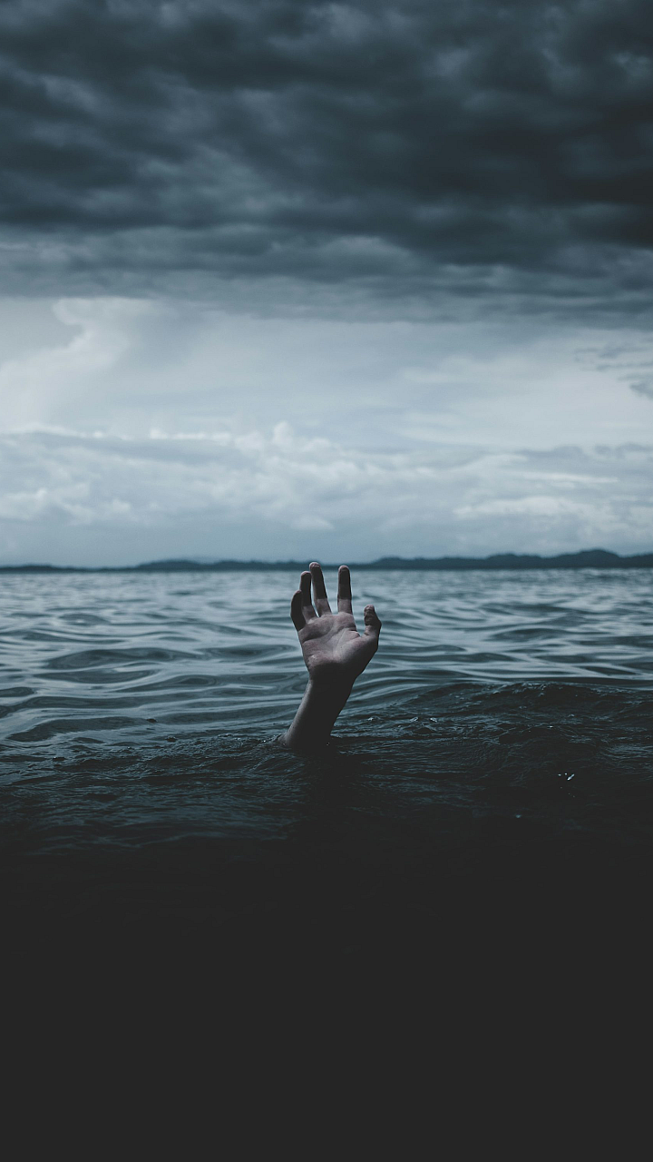 A dramatic wallpaper depicting a person struggling underwater, conveying feelings of drowning and despair. Dark and intense imagery.