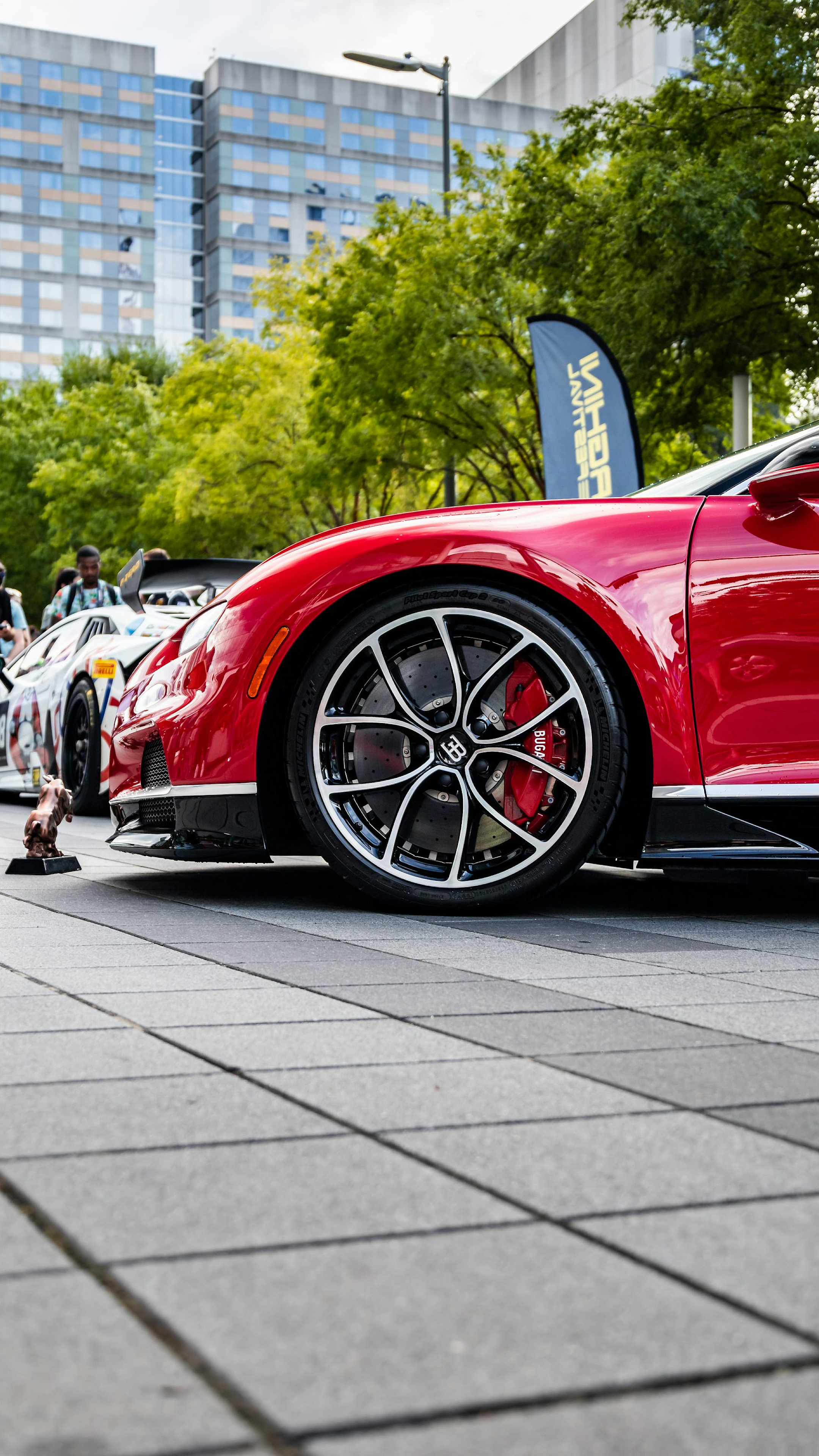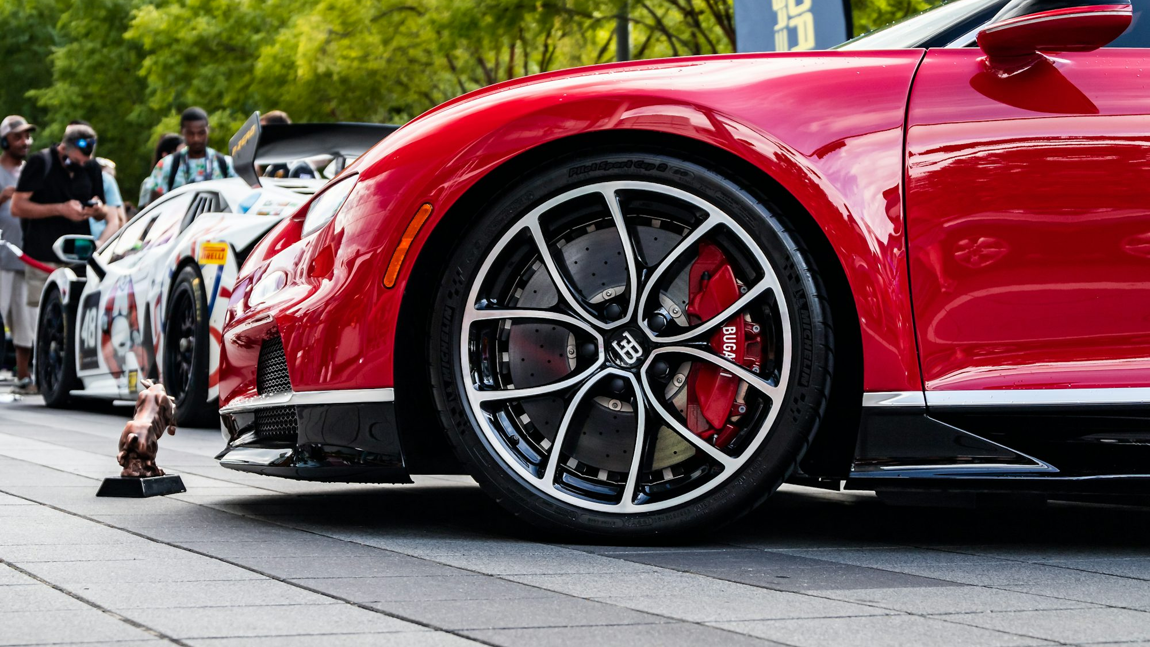 a red sports car parked on the side of the road