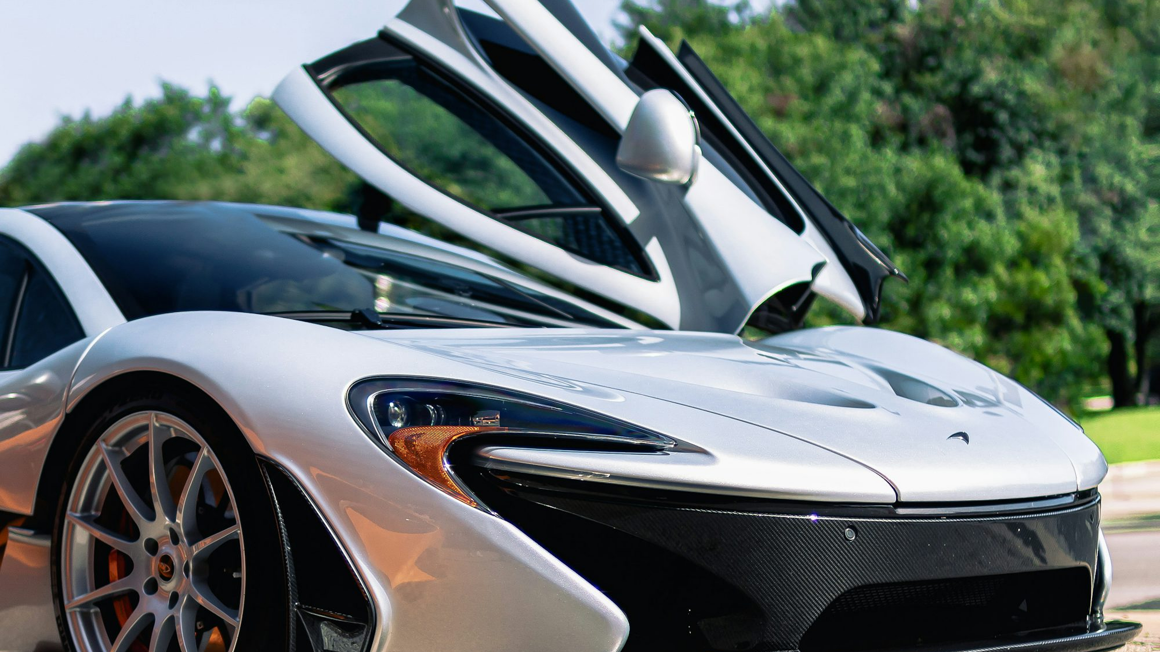white sports car, black sports car, sports car wallpaper, car wallpaper, black and white car, roadside car, sports car parked, automotive wallpaper, vehicle wallpaper, high-resolution wallpaper