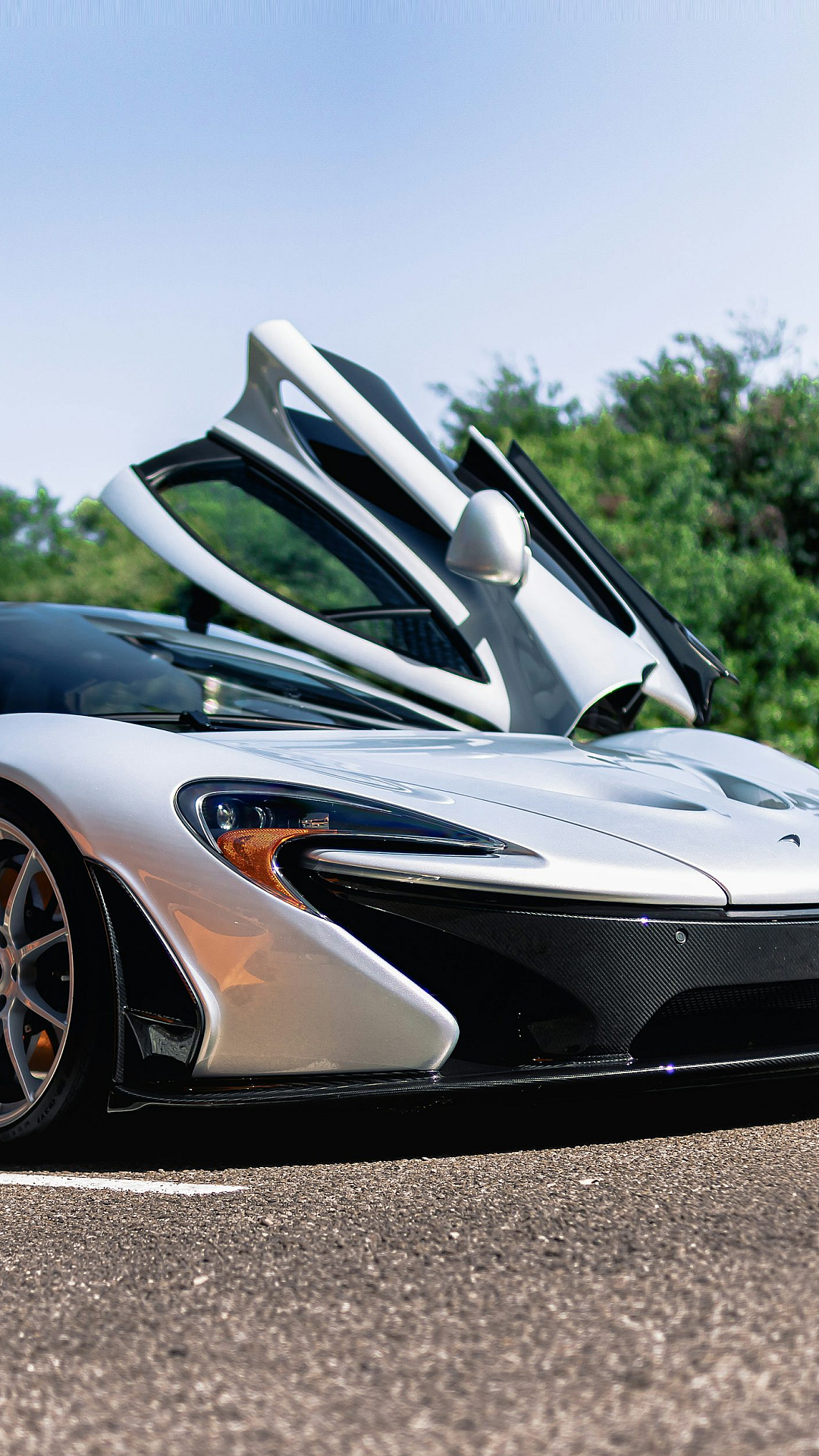 A stunning wallpaper featuring a sleek white and black sports car parked elegantly by the roadside. Perfect for car enthusiasts!