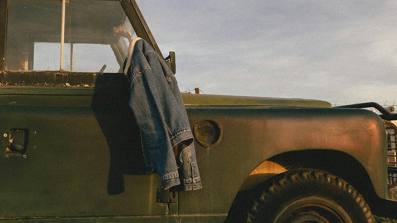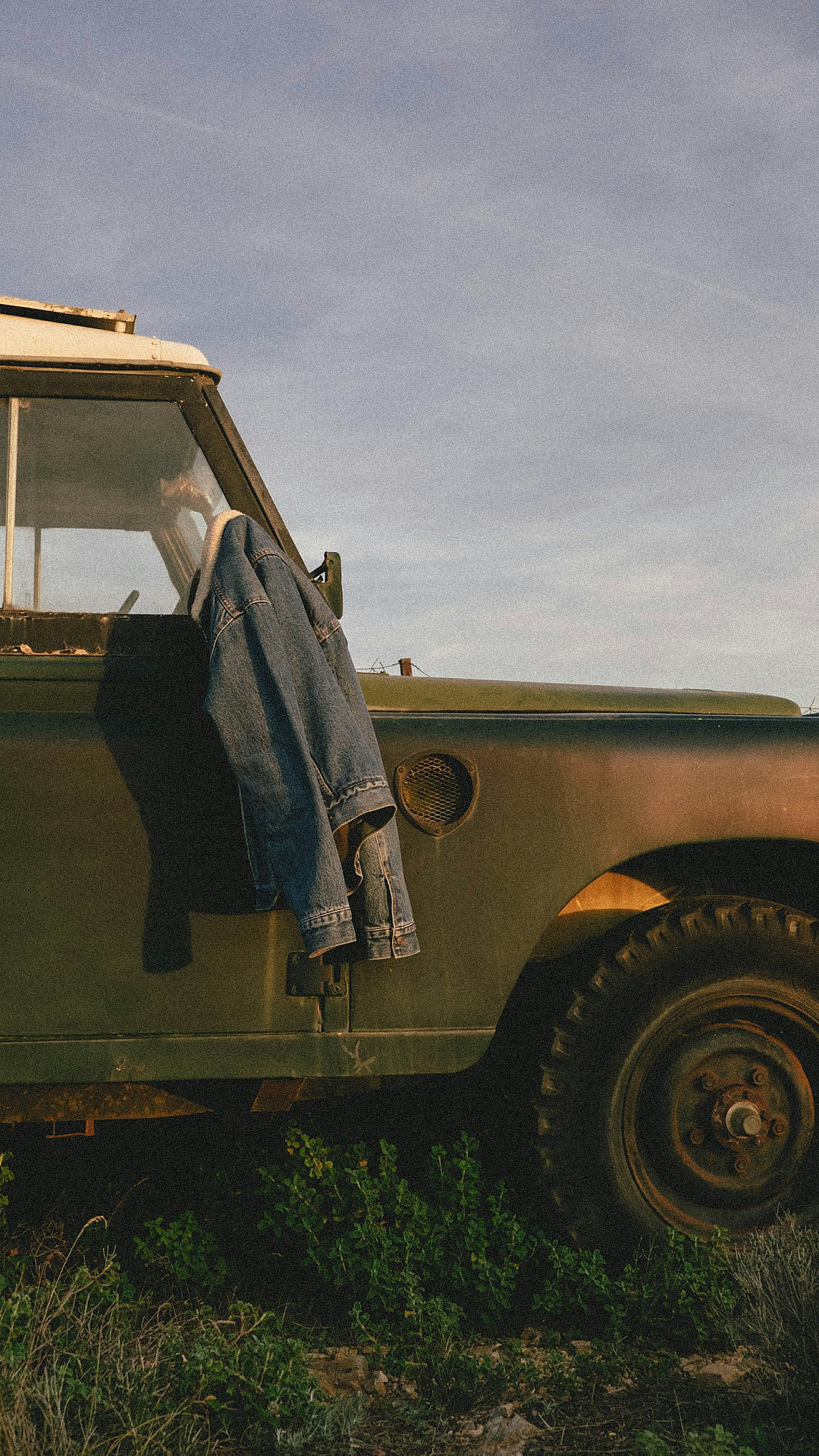 Wallpaper Blue Denim Jacket on Vehicle Mirror