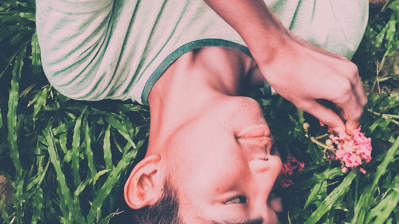 A captivating wallpaper featuring a boy relaxing on the ground, wearing a comfortable white and green crew-neck t-shirt. A perfect image for a calm and peaceful desktop.