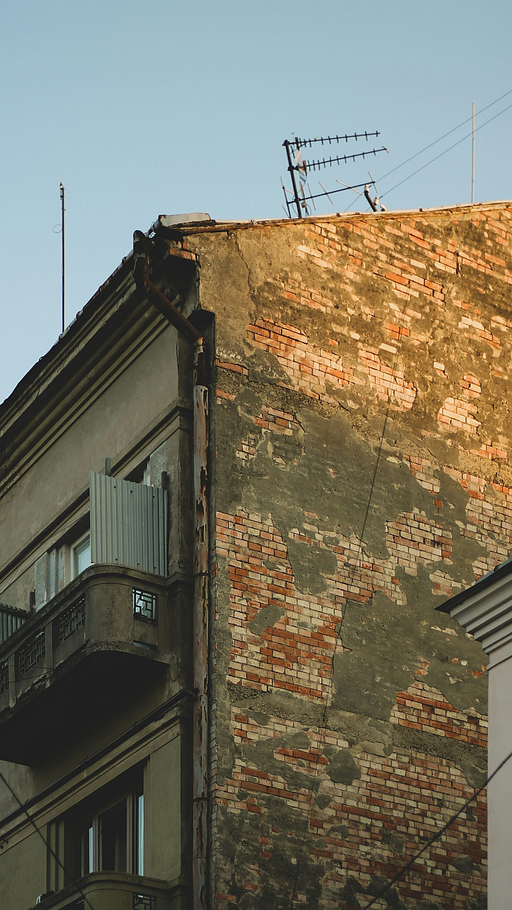 brown brick building, blue sky, daytime, architecture, wallpaper, urban, building exterior, brick wall, cityscape, texture