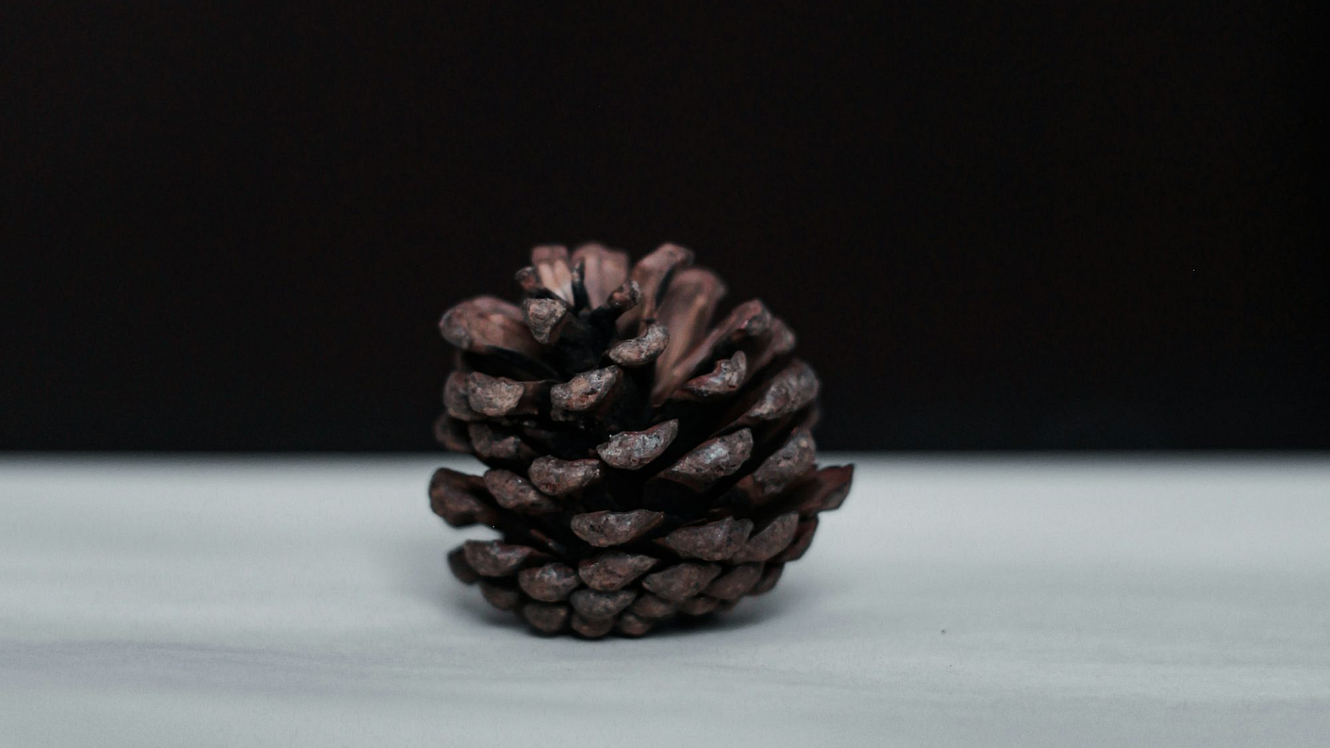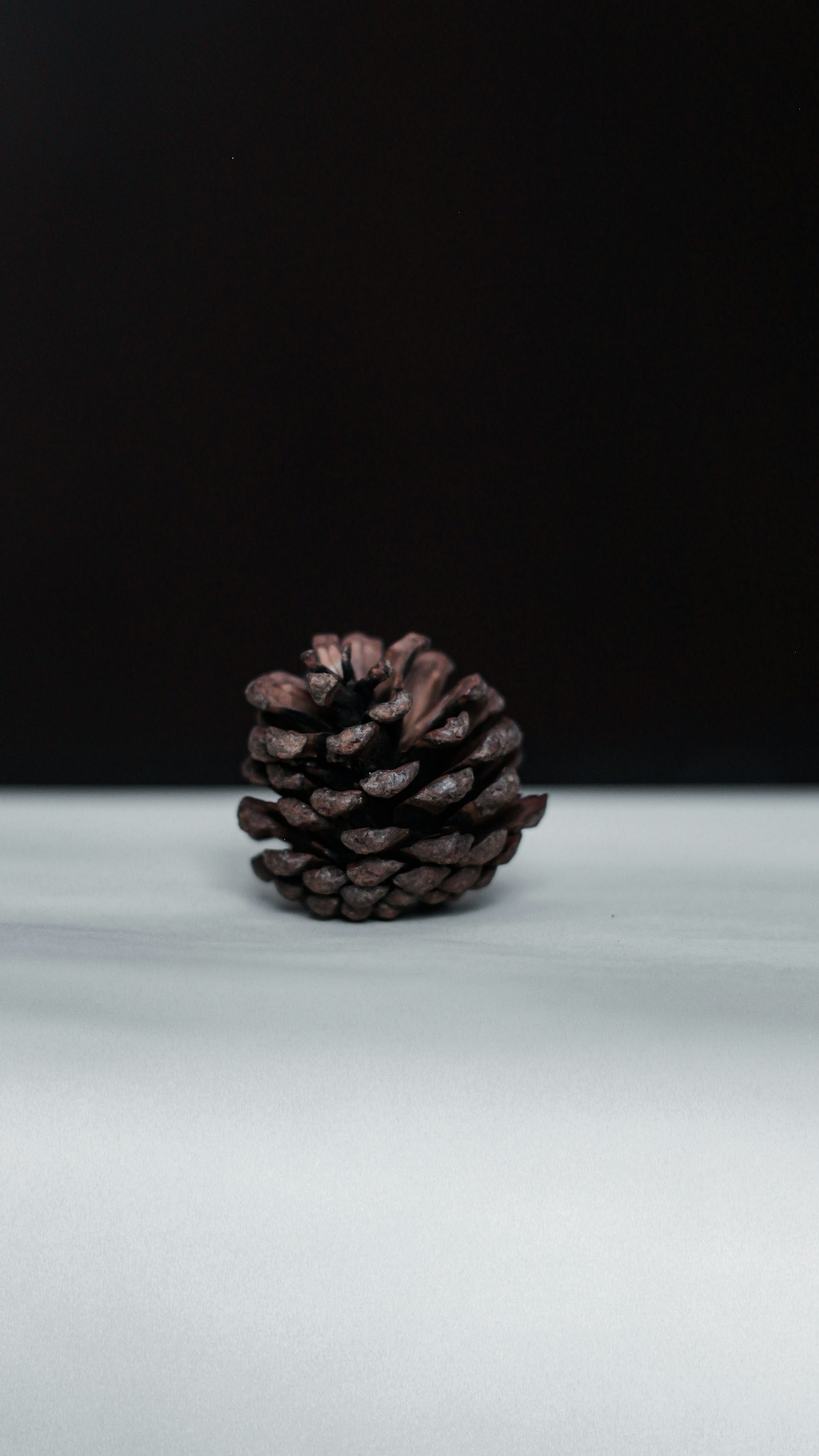 A simple yet elegant wallpaper featuring a brown pine cone against a clean white surface. Perfect for a minimalist aesthetic.