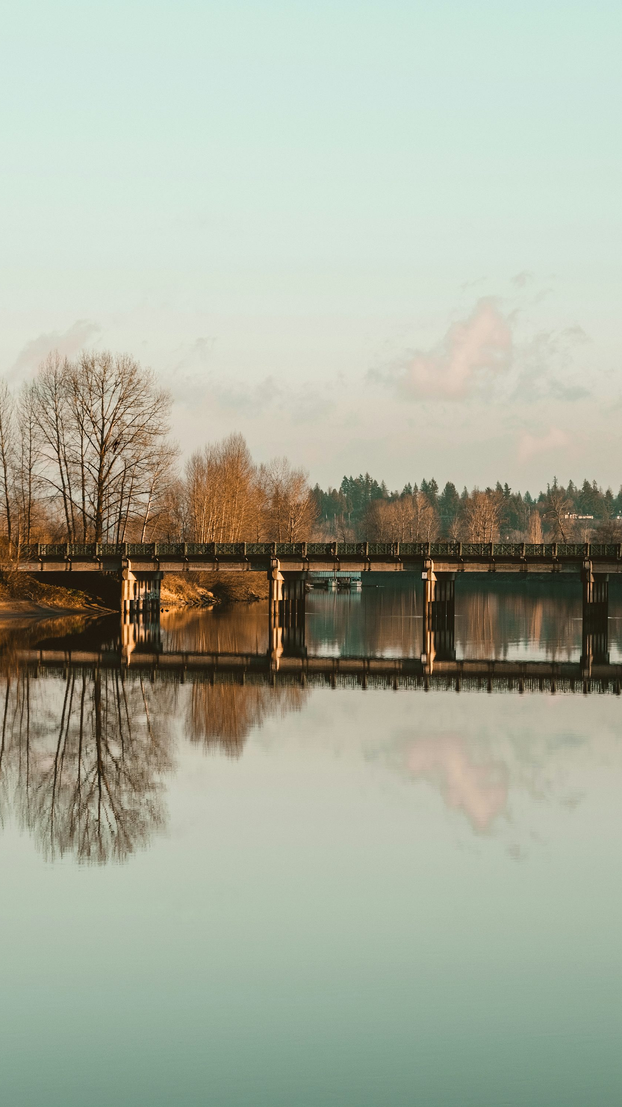 brown trees, river, cloudy sky, daytime, landscape, nature, wallpaper, background, scenic, water