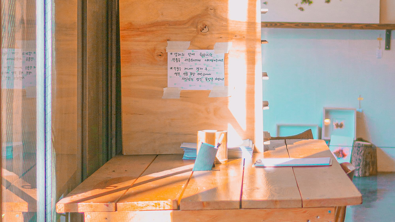 A simple yet elegant wallpaper featuring a brown wooden table with a sheet of white printer paper, perfect for a minimalist desktop background.