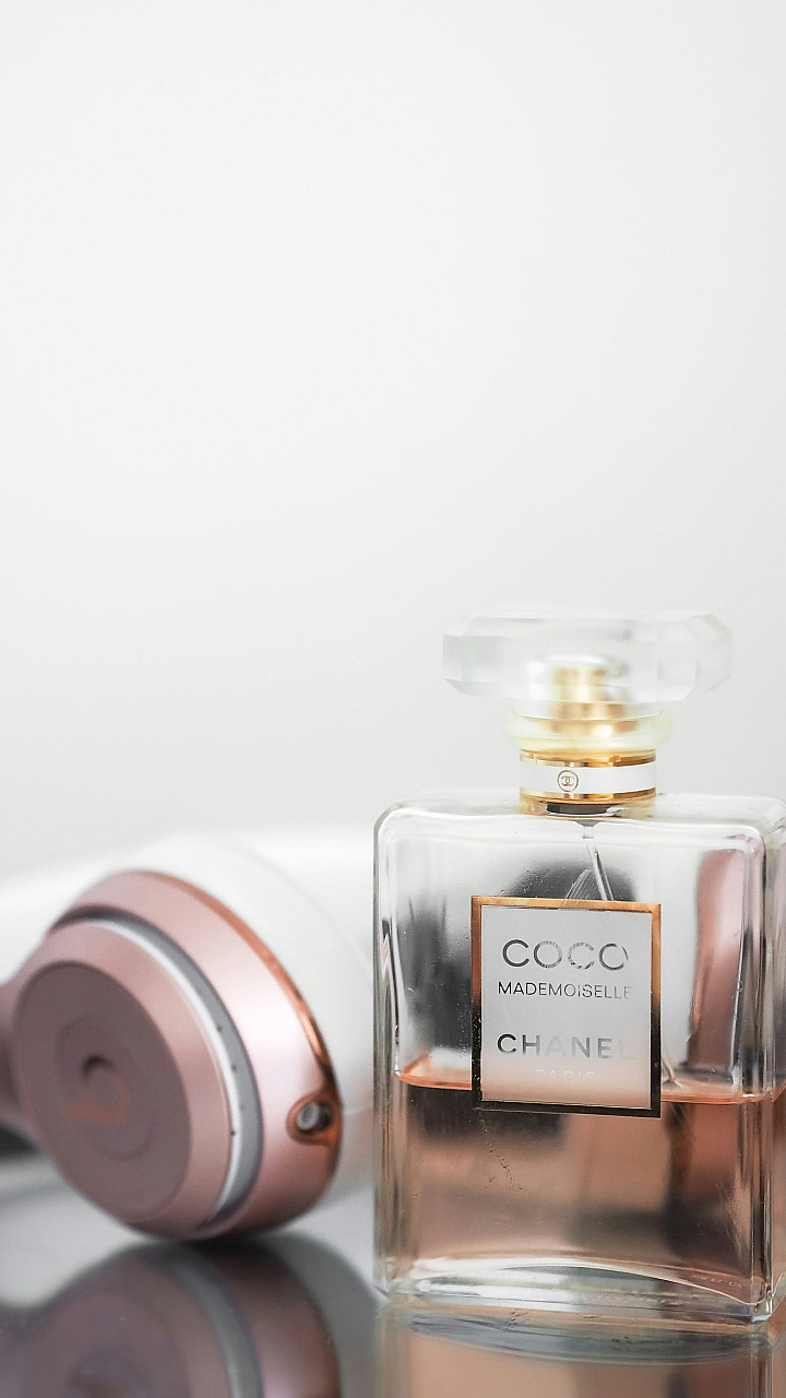 Chanel, Perfume, Bottle, Beats by Dre, Headphones, Pink, Wallpaper, Luxury, Fashion, Fragrance