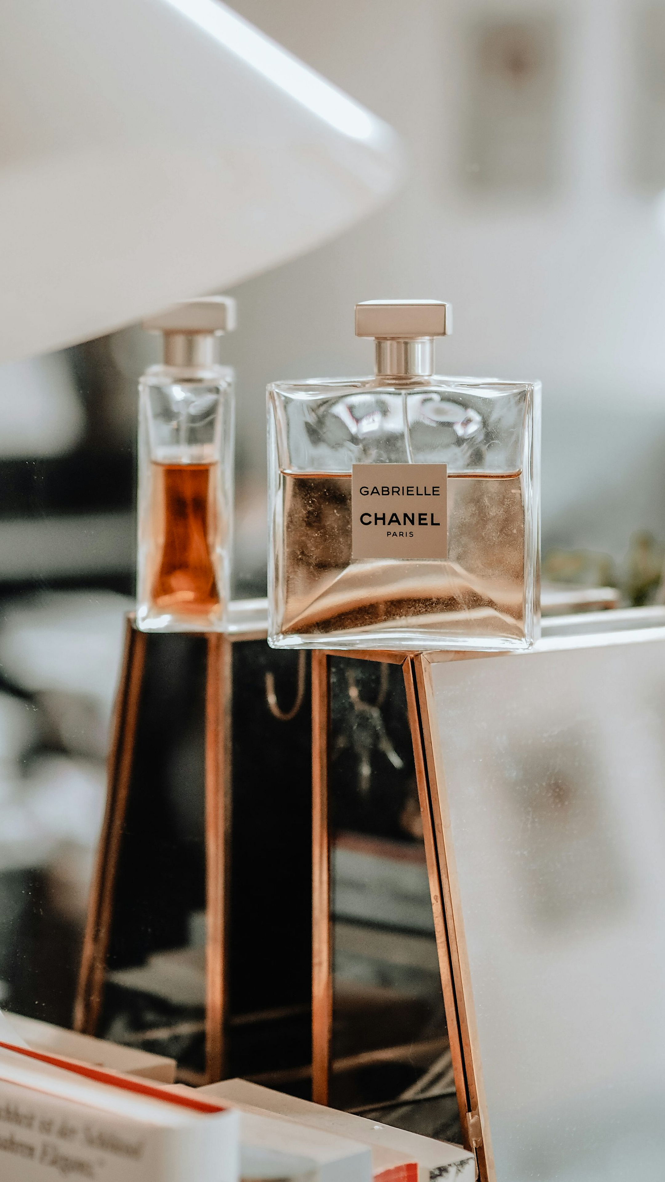 clear glass perfume bottle, white table, perfume, fragrance, bottle, glass, minimalist, simple, clean, wallpaper