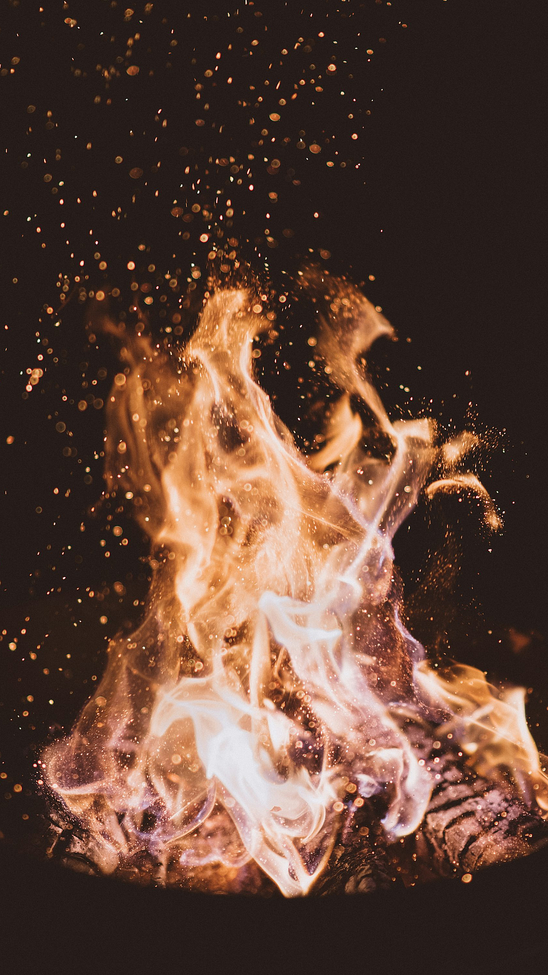 Keywords: fire, night, close-up, flames, burning, dark, heat, wallpaper, background, texture