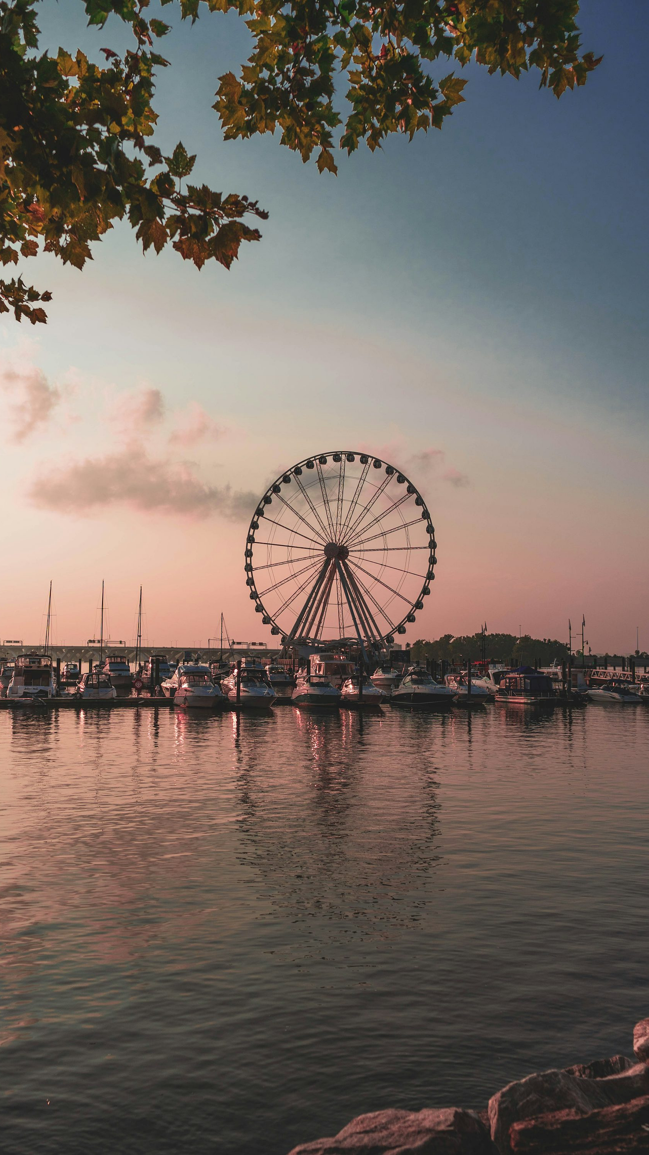 ferris wheel, body of water, daytime, landscape, amusement park, scenic, summer, travel, vacation, wallpaper