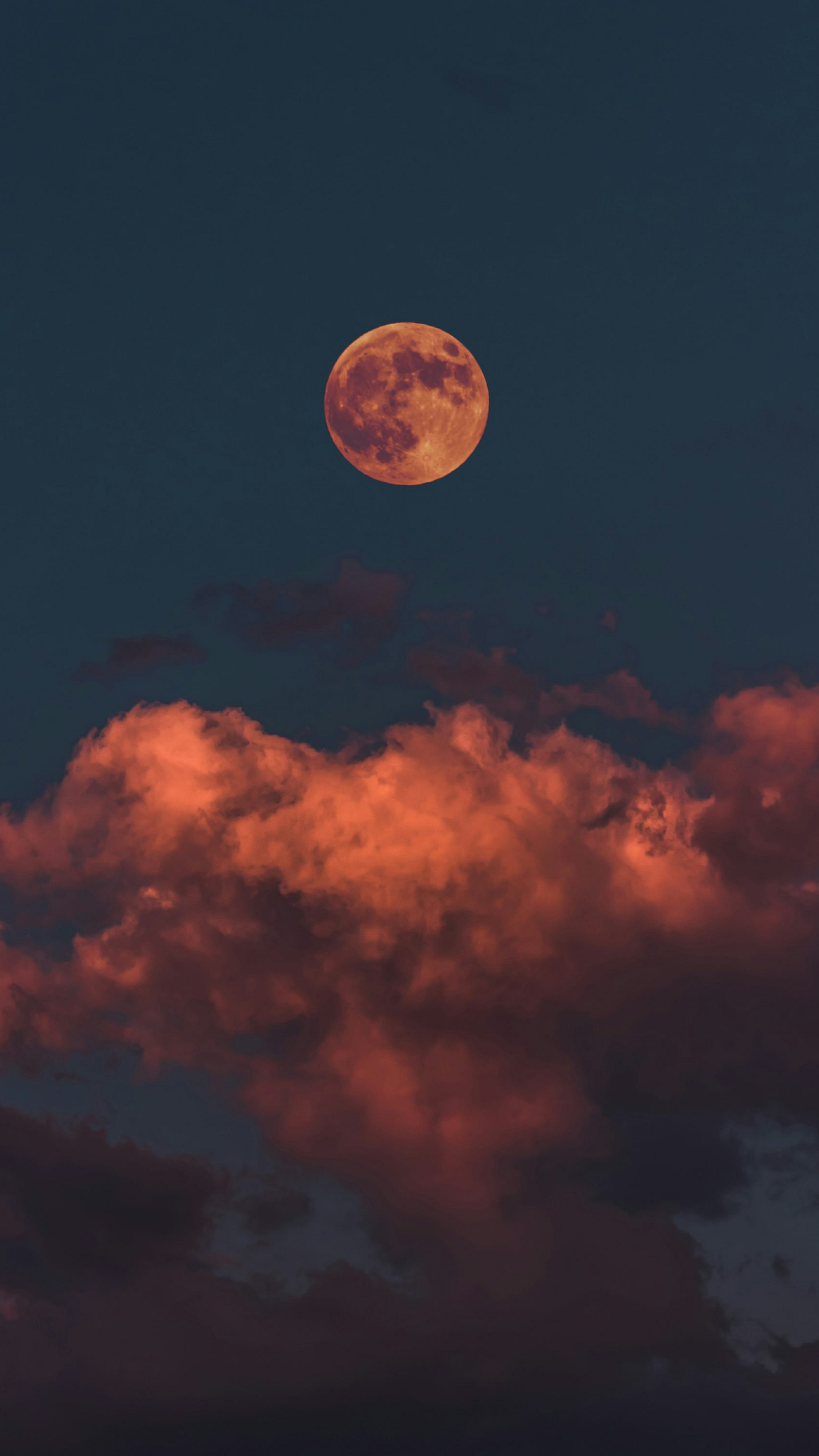 A breathtaking view of a full moon partially obscured by fluffy clouds, creating a dramatic and serene nightscape perfect for your desktop or mobile background.