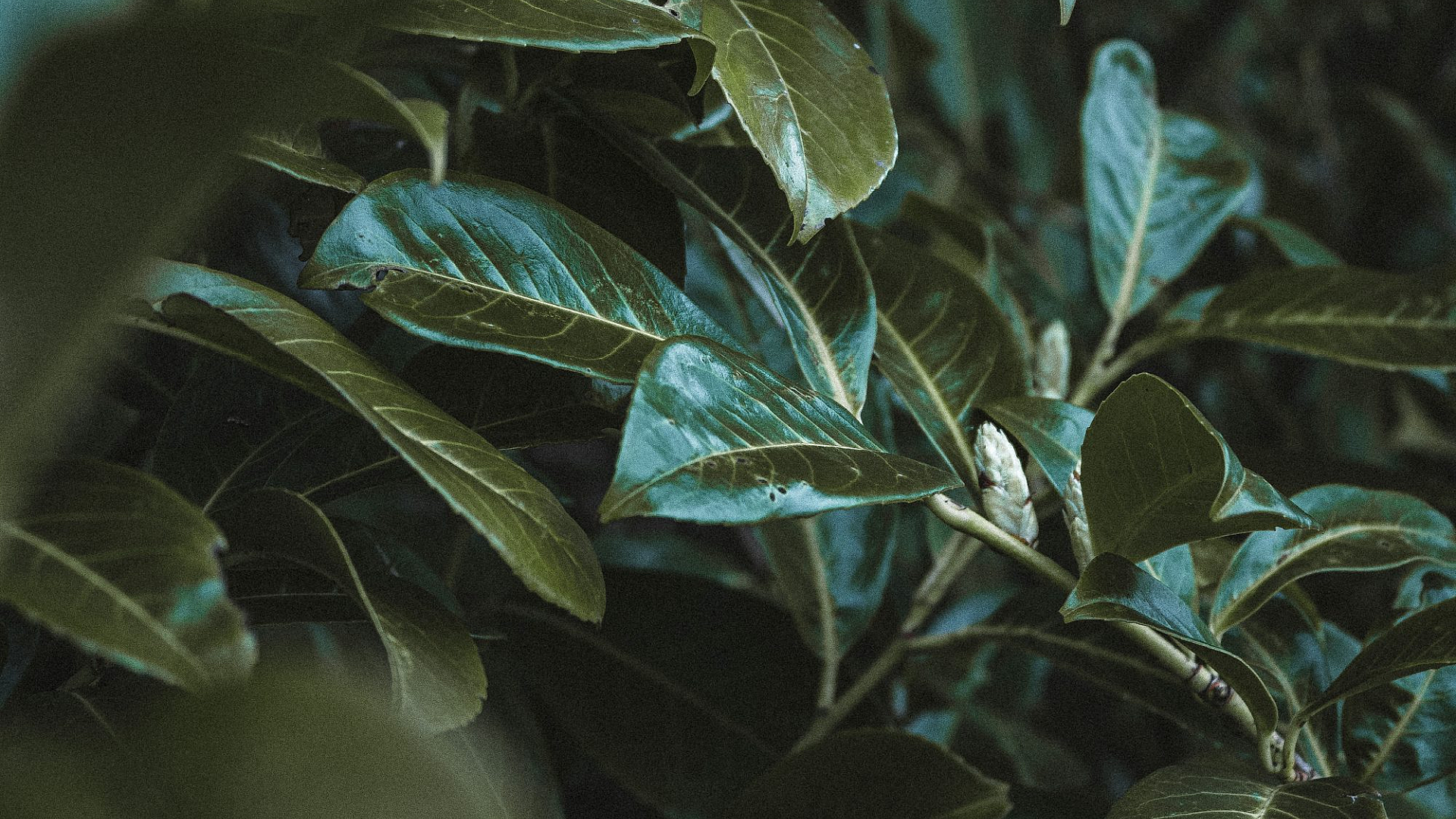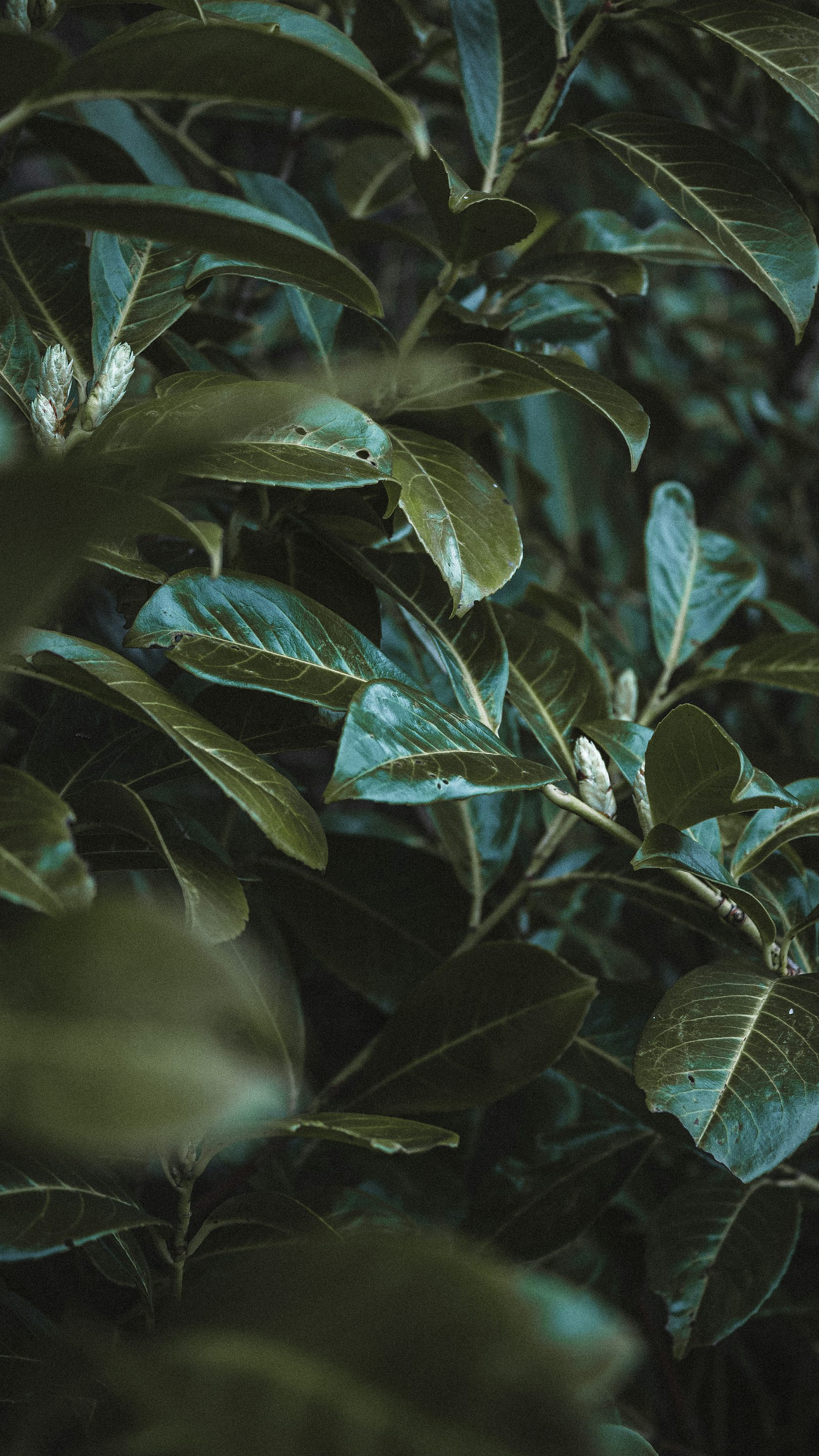 A serene and minimalist wallpaper featuring a grayscale image of lush green leaves. Perfect for a calming desktop or mobile background.