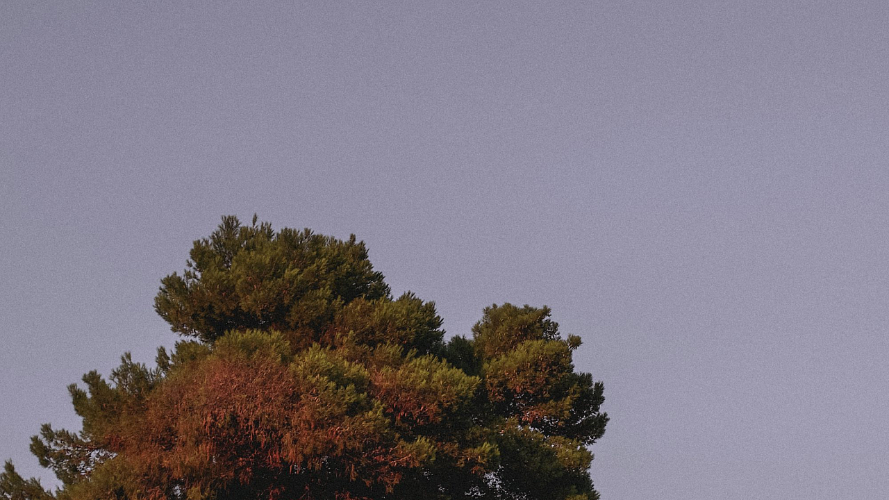 A serene image featuring a green and brown tree standing tall against a gray sky. Perfect for a calming and nature-inspired desktop background.