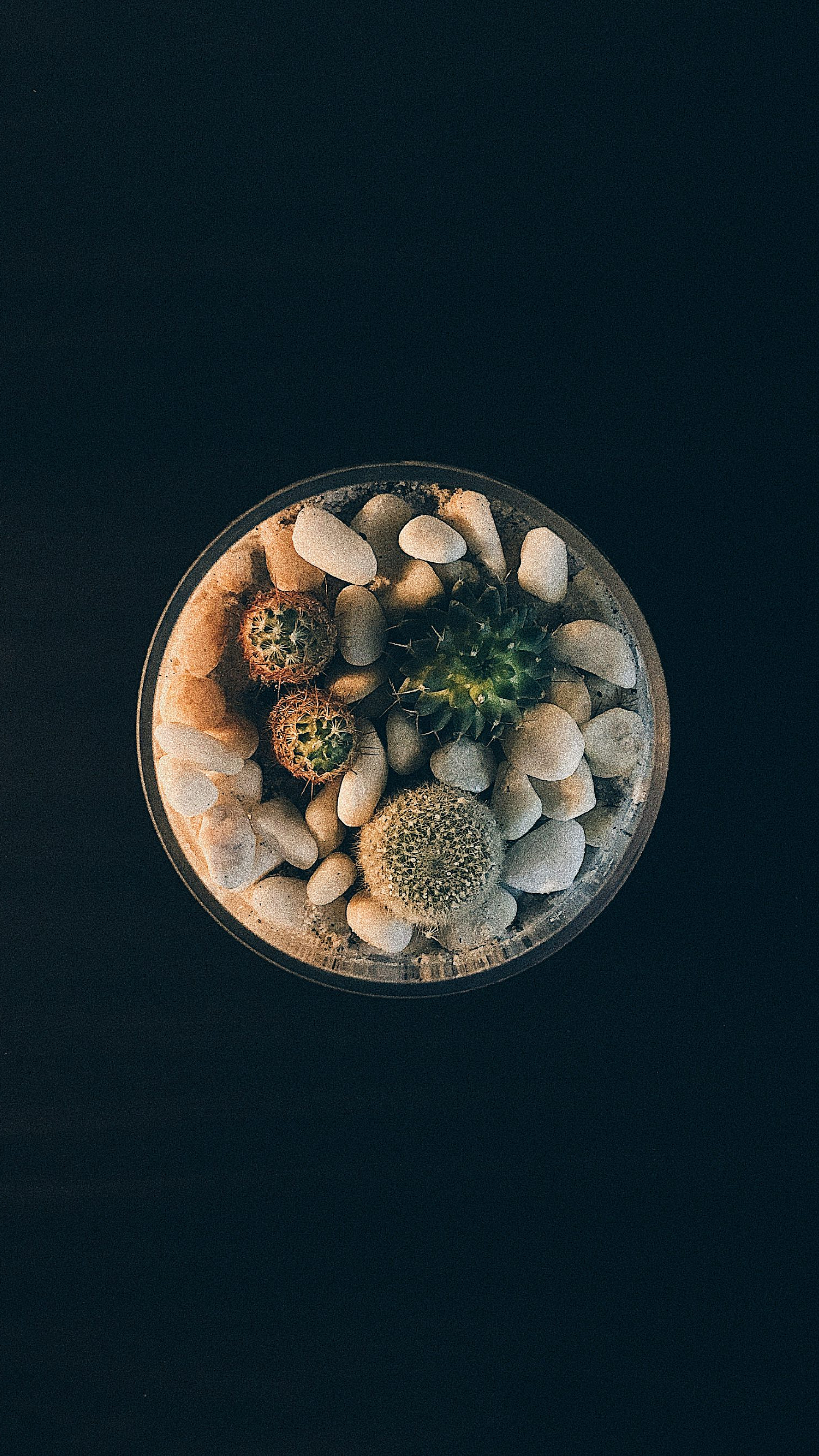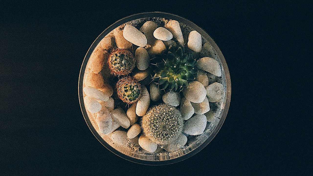 A simple yet elegant wallpaper featuring a green cactus in a clear glass vase. Perfect for a minimalist aesthetic.