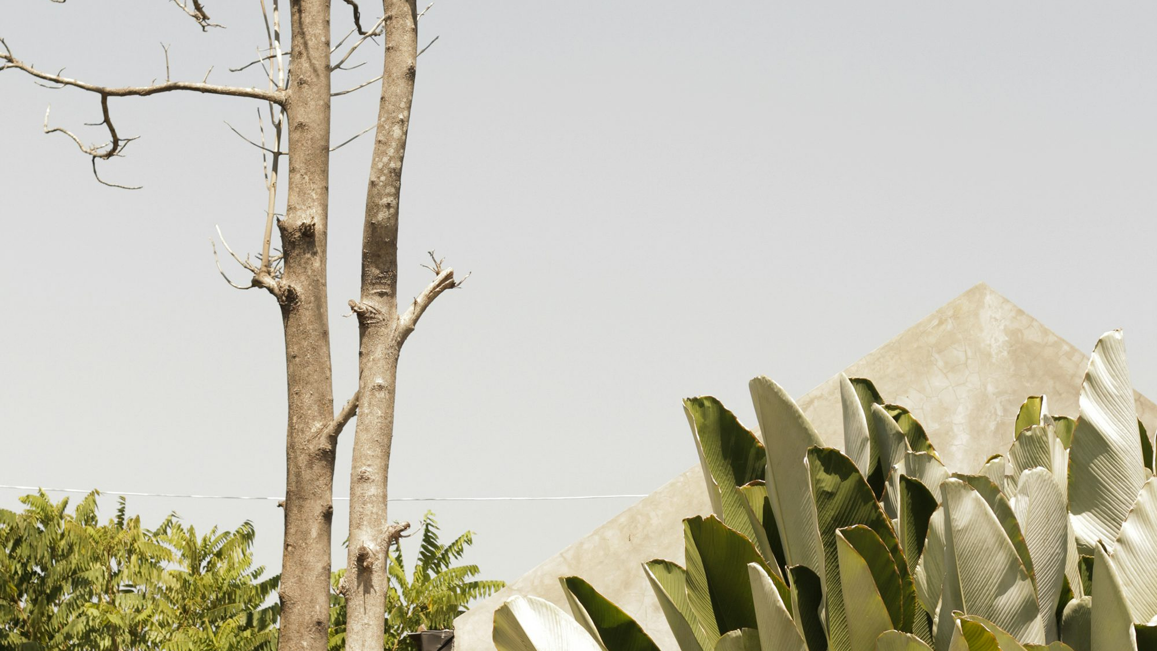 A serene image featuring a green plant elegantly displayed on a white table. Perfect for a minimalist desktop or phone background.