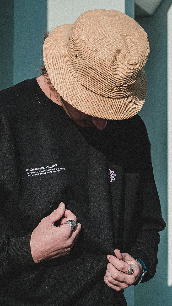 A stylish wallpaper featuring a man wearing a black sweater. Perfect for a dark and moody desktop background.