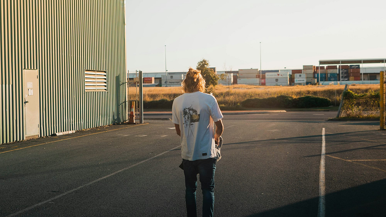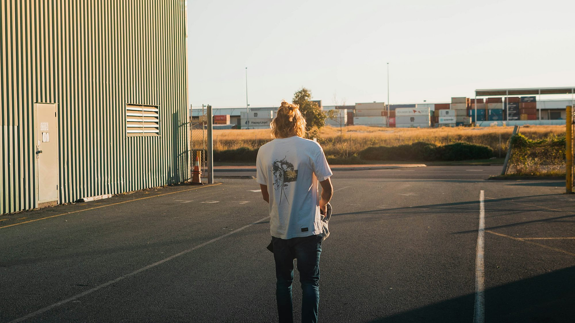man, walking, white shirt, black pants, asphalt road, gray, daytime, street, urban, wallpaper