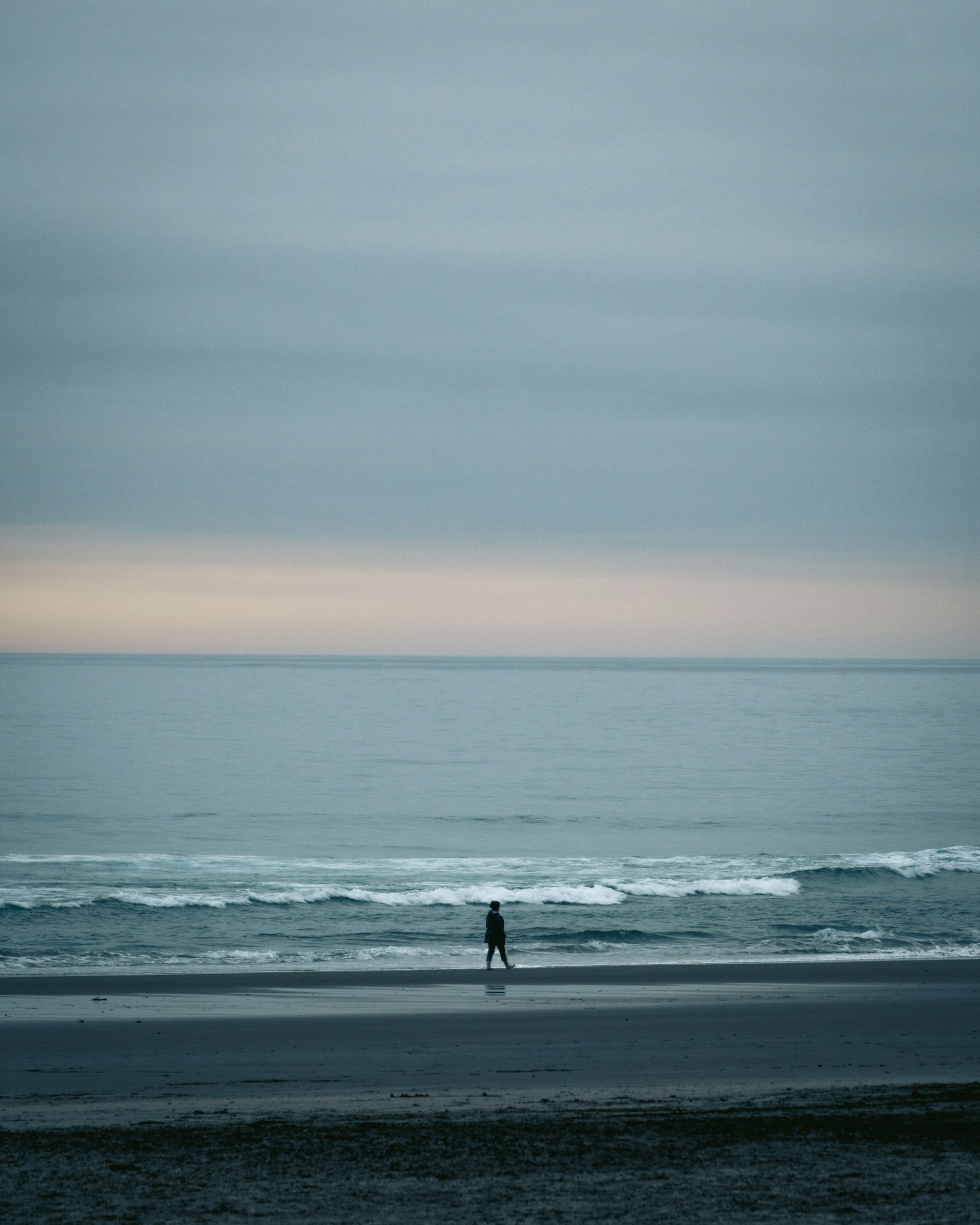 sunset, beach, person, silhouette, ocean, sea, shore, landscape, nature, wallpaper