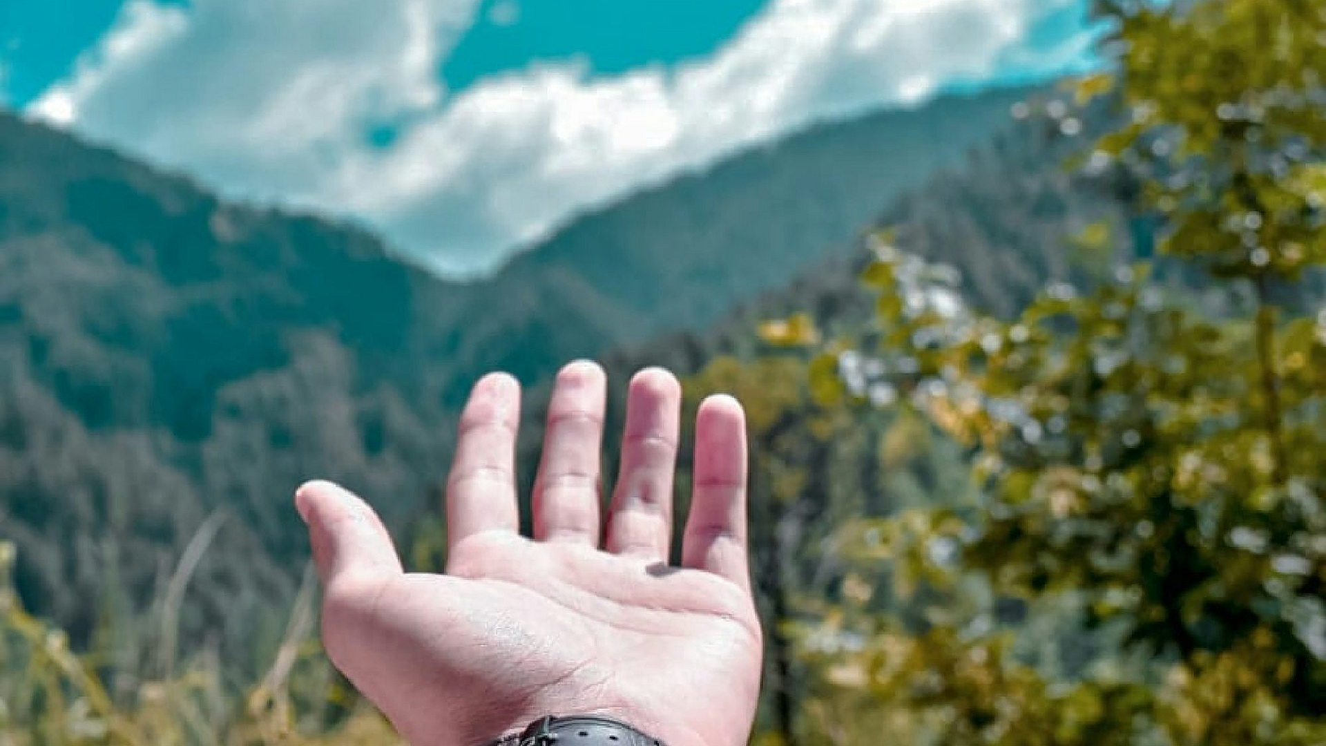 This wallpaper features a close-up shot of a person wearing a stylish watch with a leather strap. Simple yet elegant.