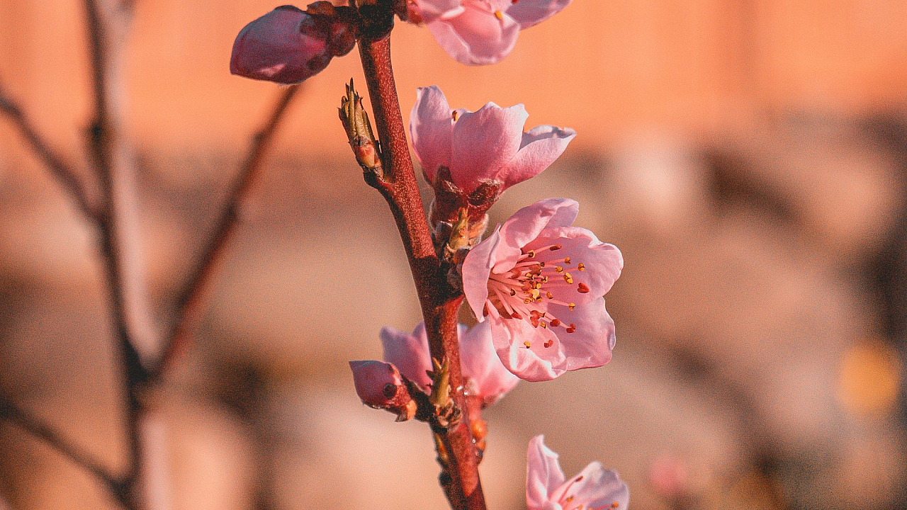 A dreamy tilt-shift image of pink and white flowers, creating a miniature-like effect with a soft, blurred background. Perfect for a peaceful desktop.