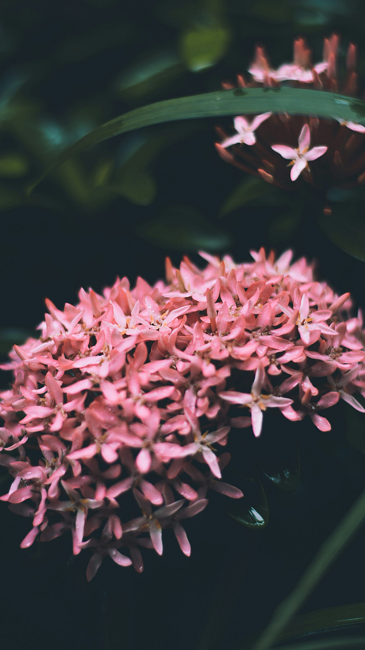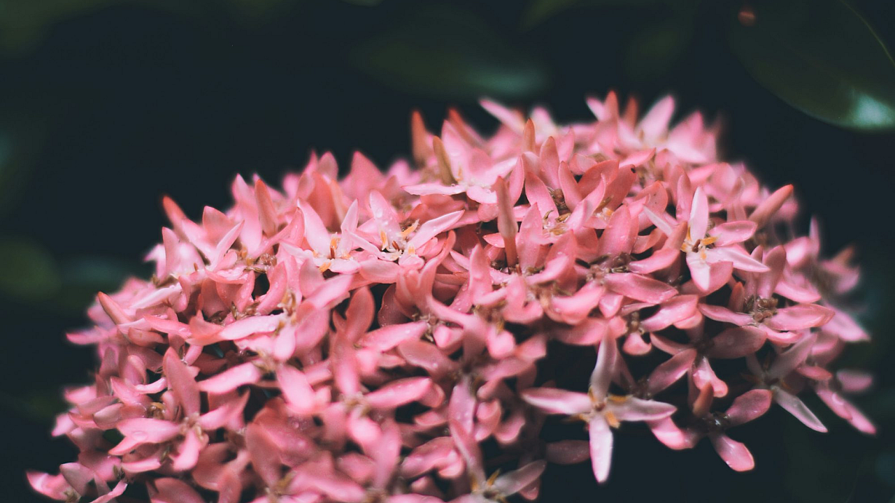 This wallpaper features a charming array of pink flowers, captured with a tilt-shift lens to create a delightful miniature effect. Enjoy the dreamy, pastel tones.
