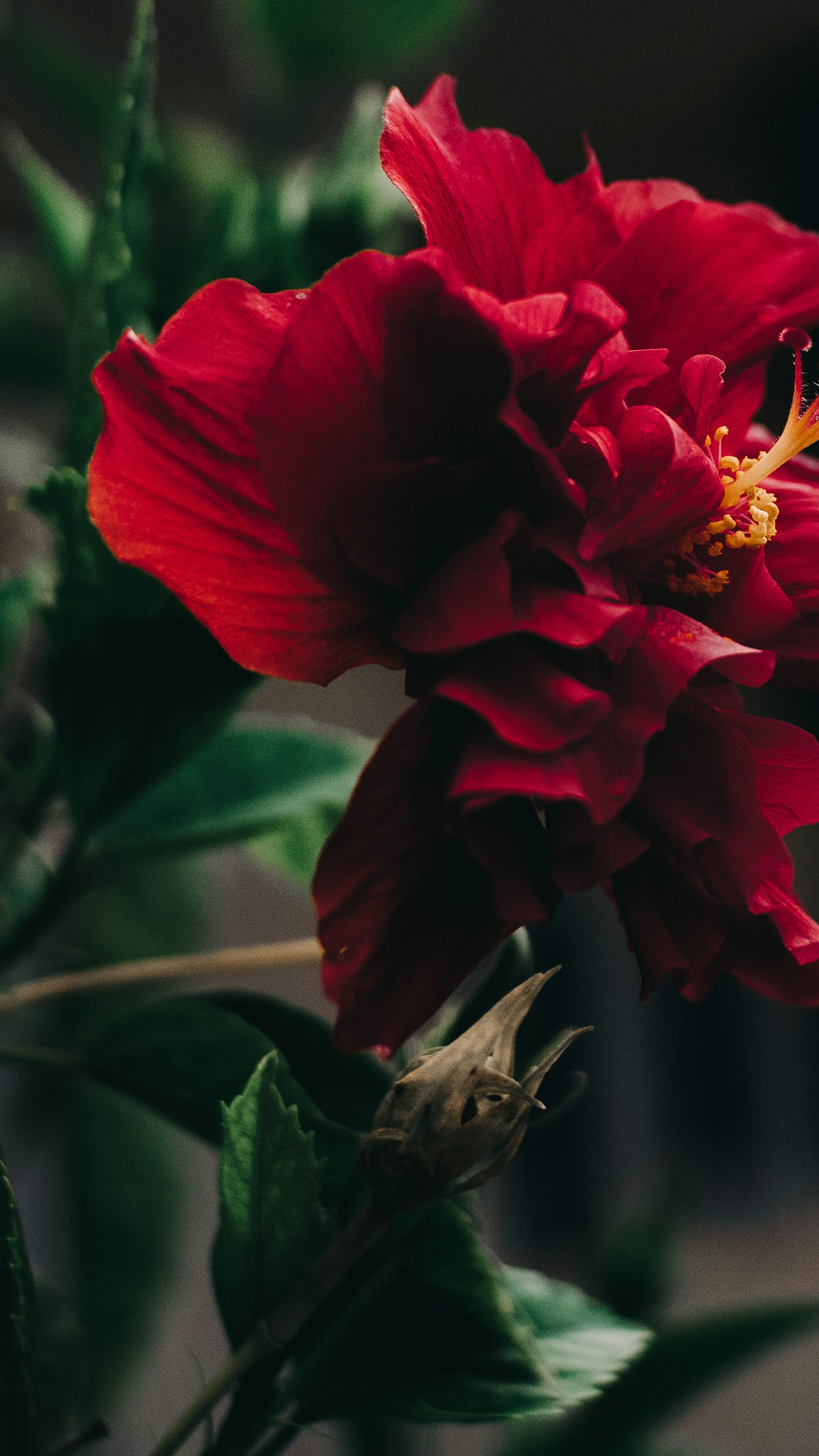 A captivating wallpaper featuring a vibrant red flower, captured with a tilt-shift lens to create a dreamy, miniature effect. Perfect for adding a touch of elegance.