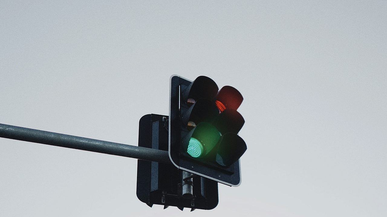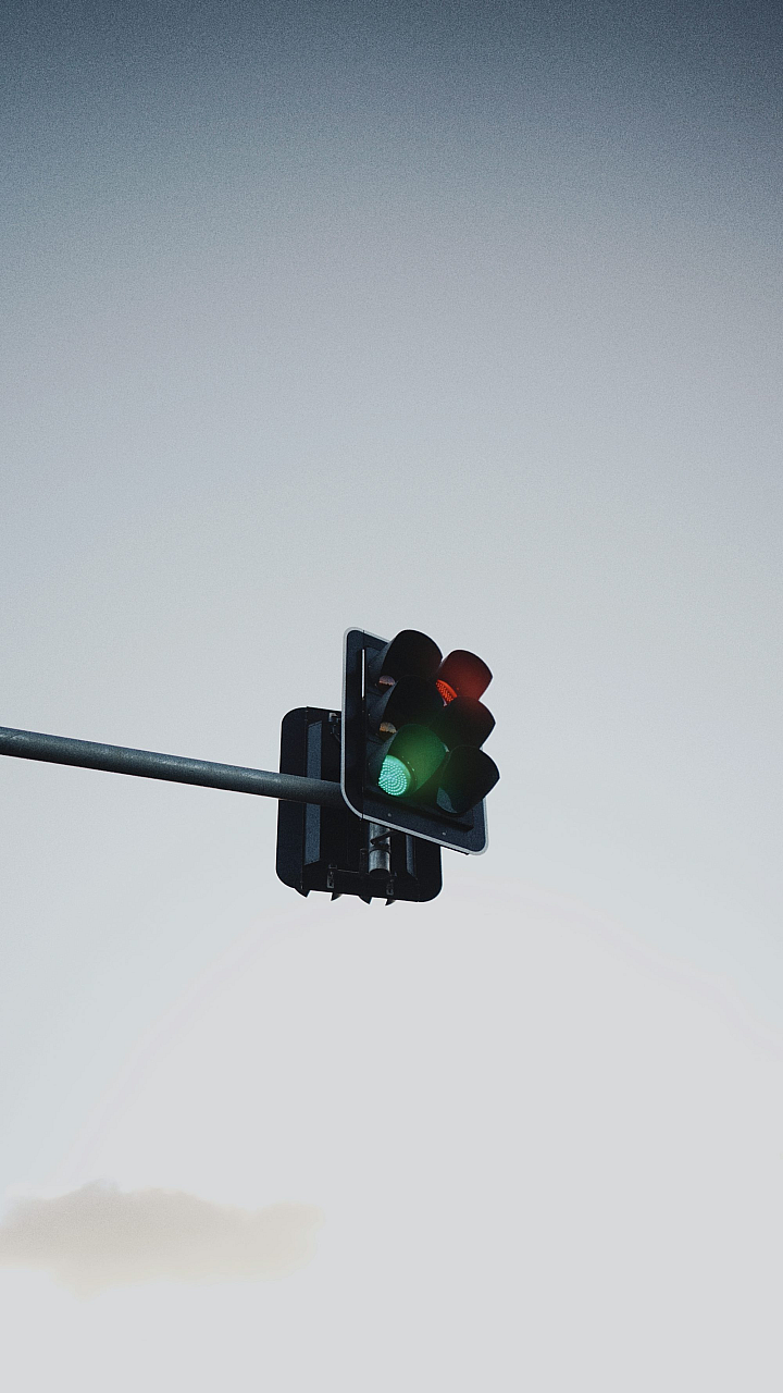A vibrant wallpaper featuring a traffic light displaying a bright green light, signifying go. Perfect for a clean, modern aesthetic.