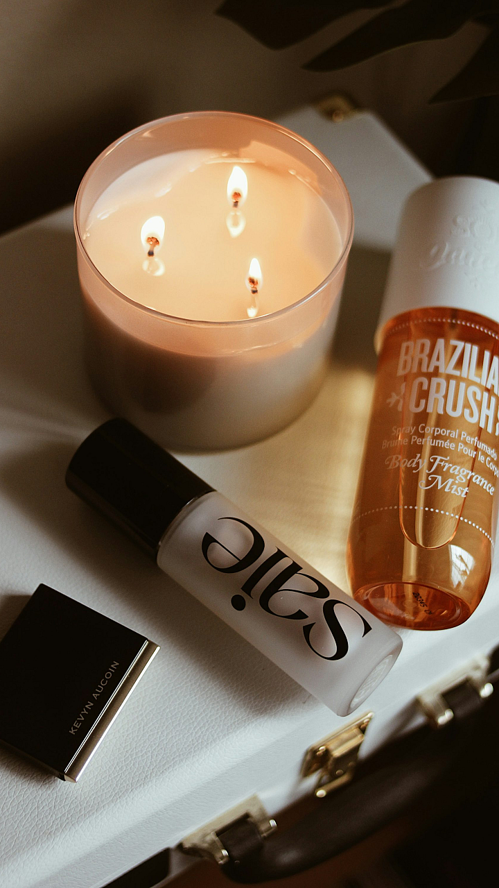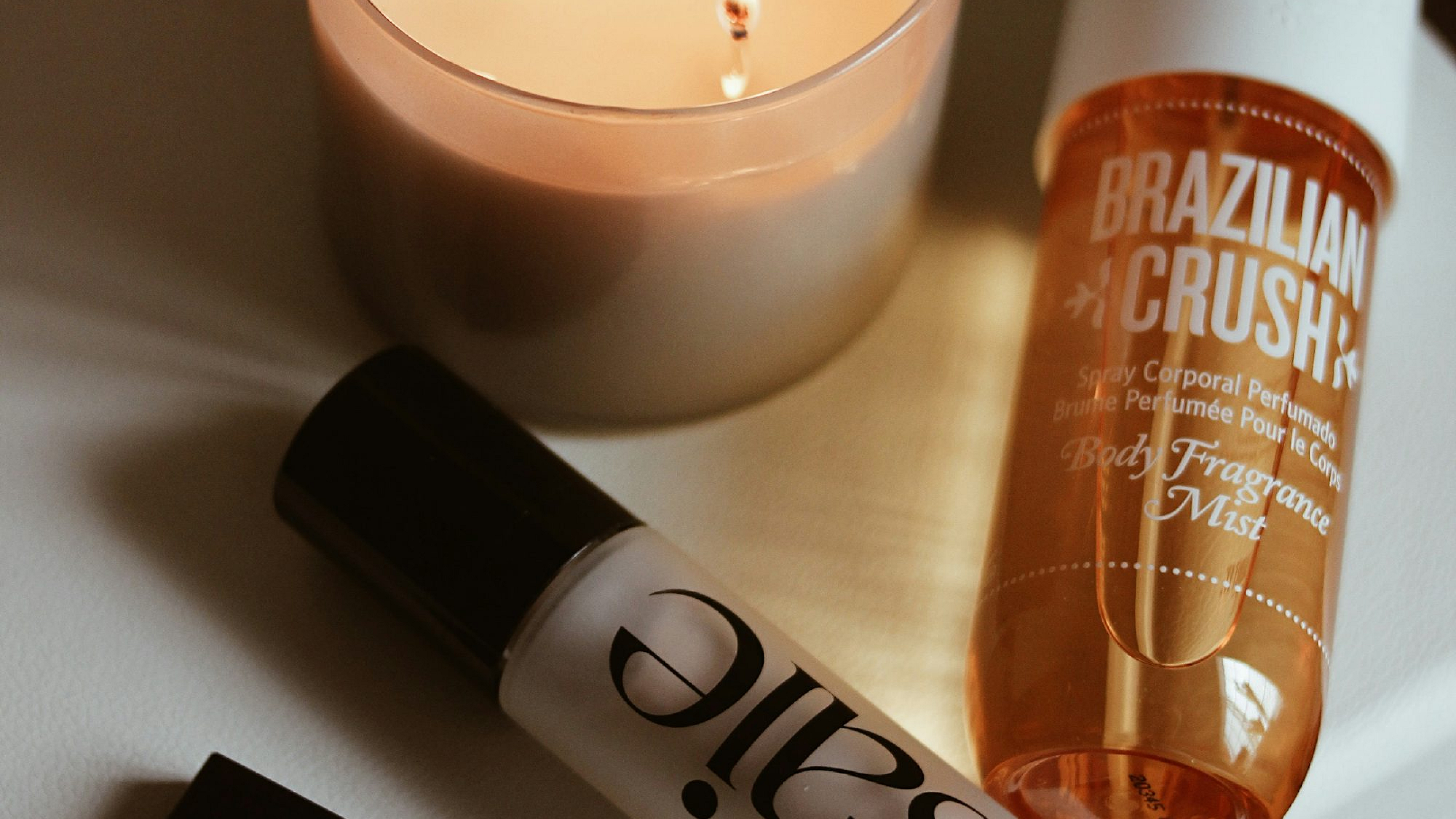 A simple yet elegant wallpaper featuring a white and black click pen resting beside a white plastic bottle. Perfect for a minimalist desktop background.