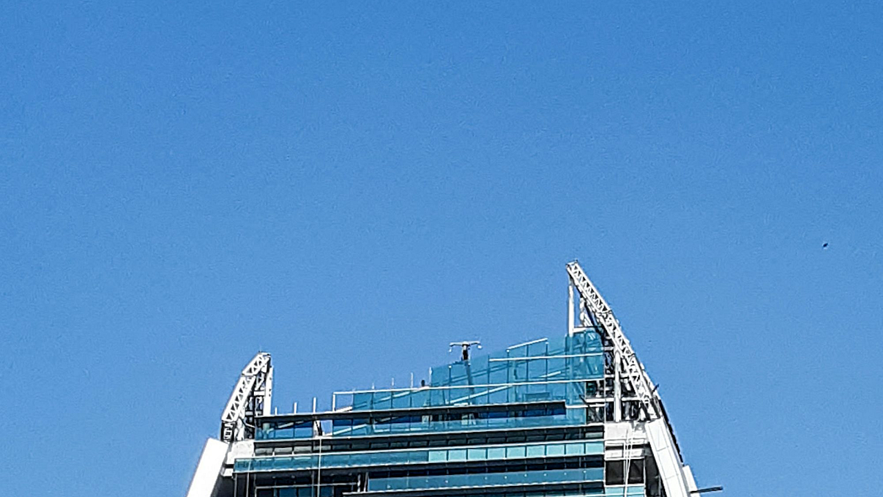 white building, blue building, blue sky, daytime, architecture, wallpaper, background, sky, building, scene