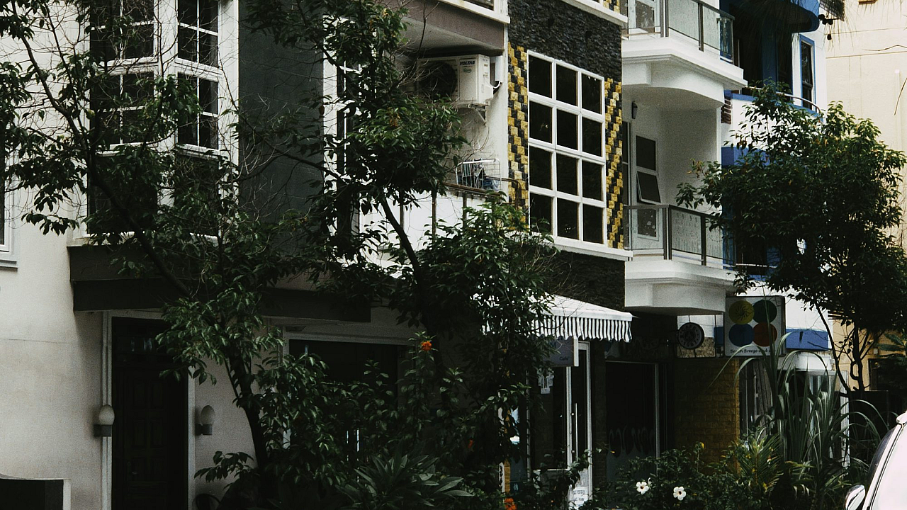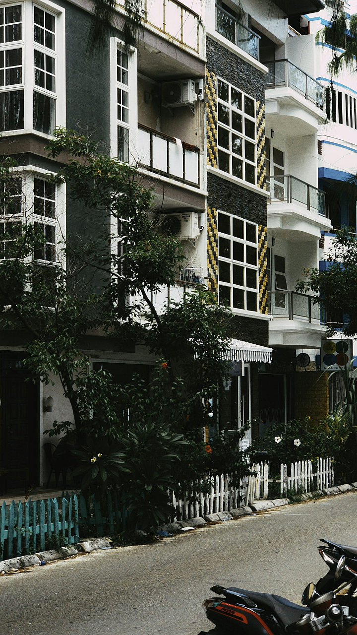 A stunning wallpaper featuring a modern, minimalist design of a white and blue concrete building. Perfect for a sleek and contemporary look.