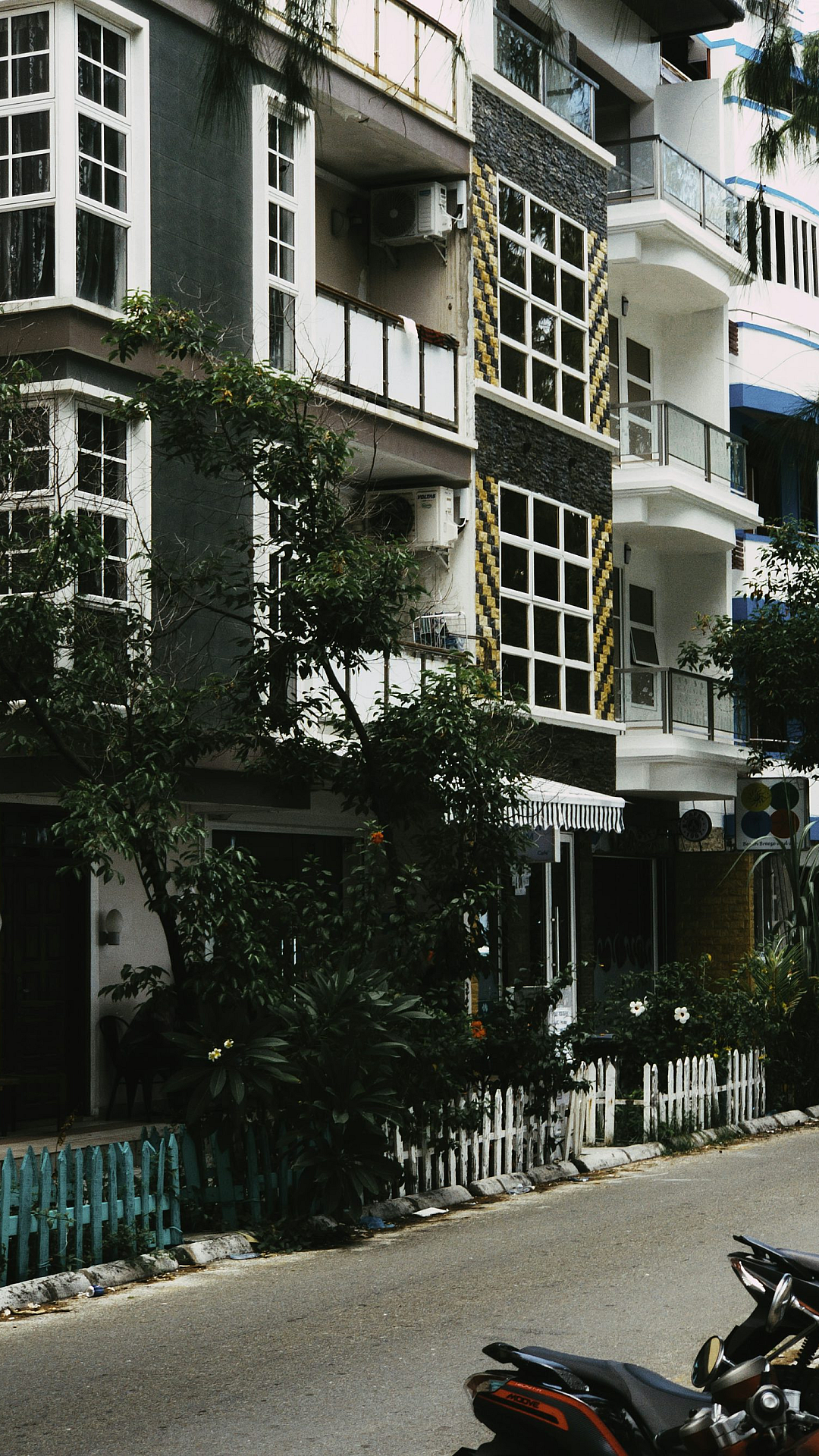white concrete, blue concrete, concrete building, architecture, modern architecture, geometric patterns, abstract, minimalist, wallpaper, background