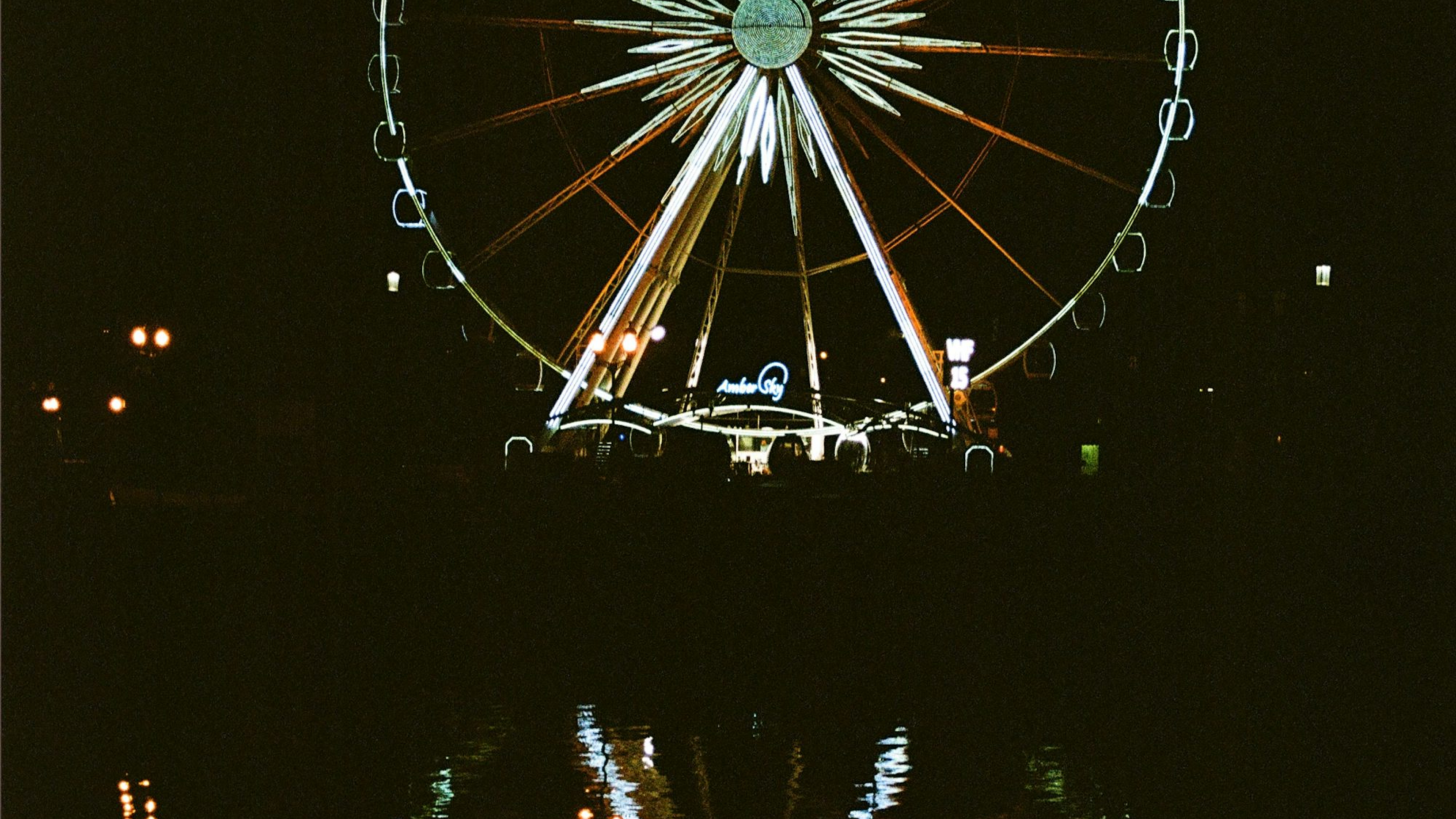 white ferris wheel, blue ferris wheel, ferris wheel wallpaper, white and blue wallpaper, amusement park wallpaper, carnival wallpaper, night wallpaper, fair wallpaper, summer wallpaper, whimsical wallpaper