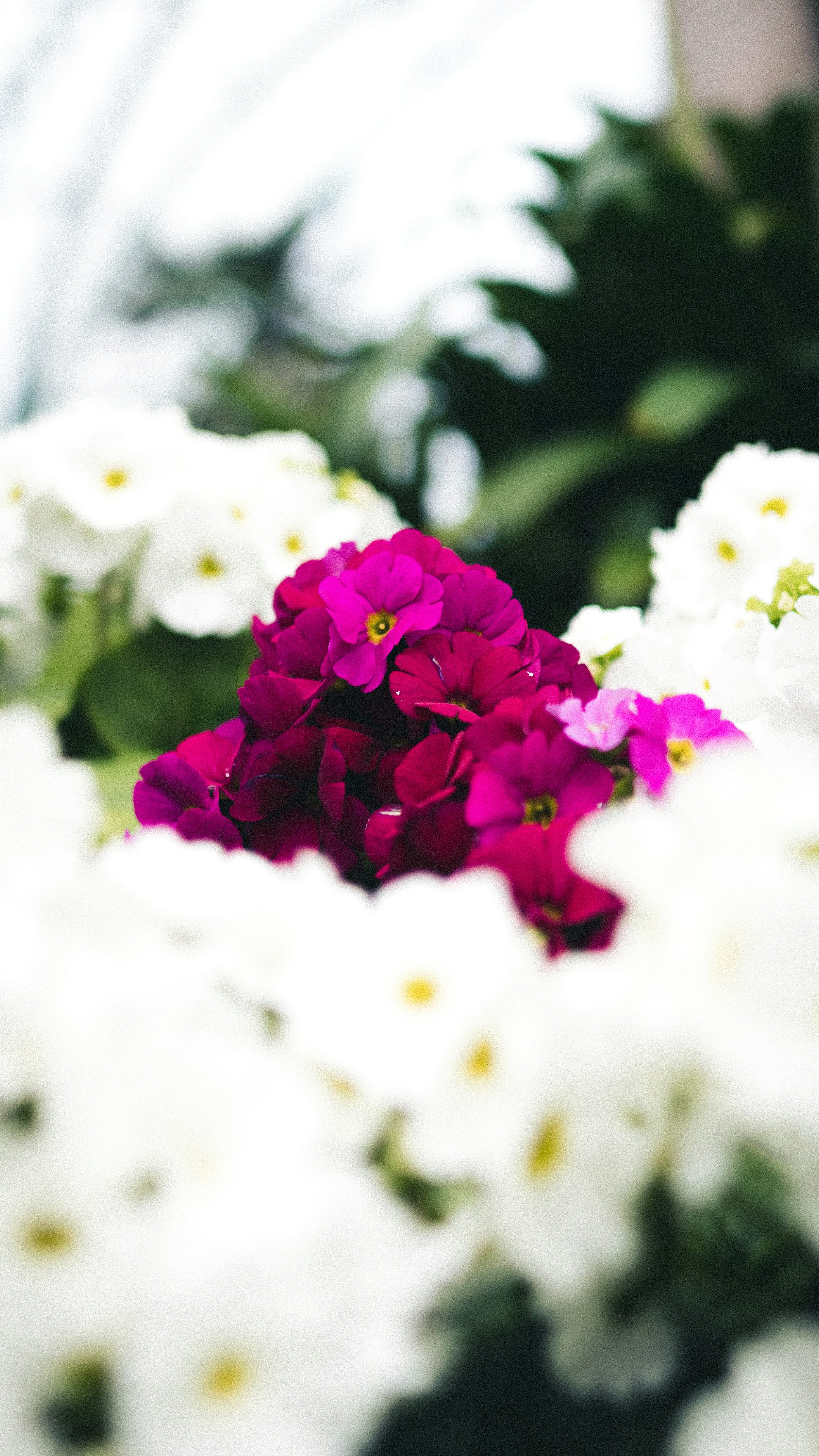 white flowers, purple flowers, tilt-shift, tilt-shift photography, macro photography, floral wallpaper, flower wallpaper, purple and white, pastel flowers, dreamy wallpaper