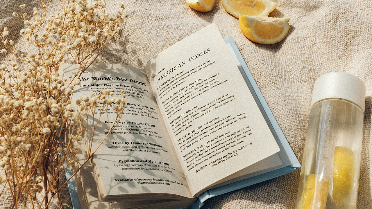 white book, book page, clear glass bottle, bottle, minimalism, simple, clean, aesthetic, background, wallpaper