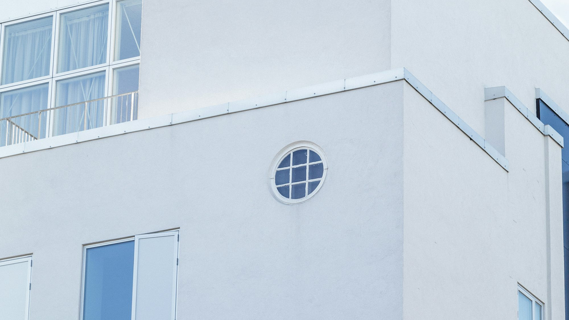 This wallpaper features a stunning image of a white concrete building bathed in the daytime sun. The clean lines and modern design make it a perfect addition to any desktop or mobile device.