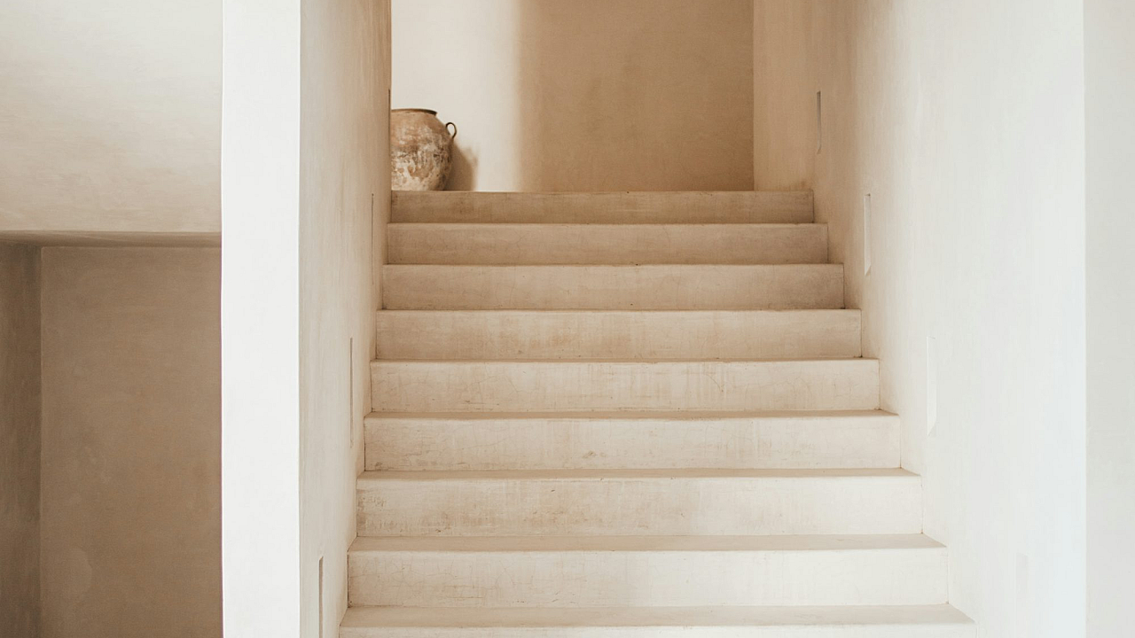 white wooden staircase, white wooden railings, staircase wallpaper, wooden staircase wallpaper, white wallpaper, minimalist wallpaper, interior wallpaper, home decor wallpaper, stairs, railing