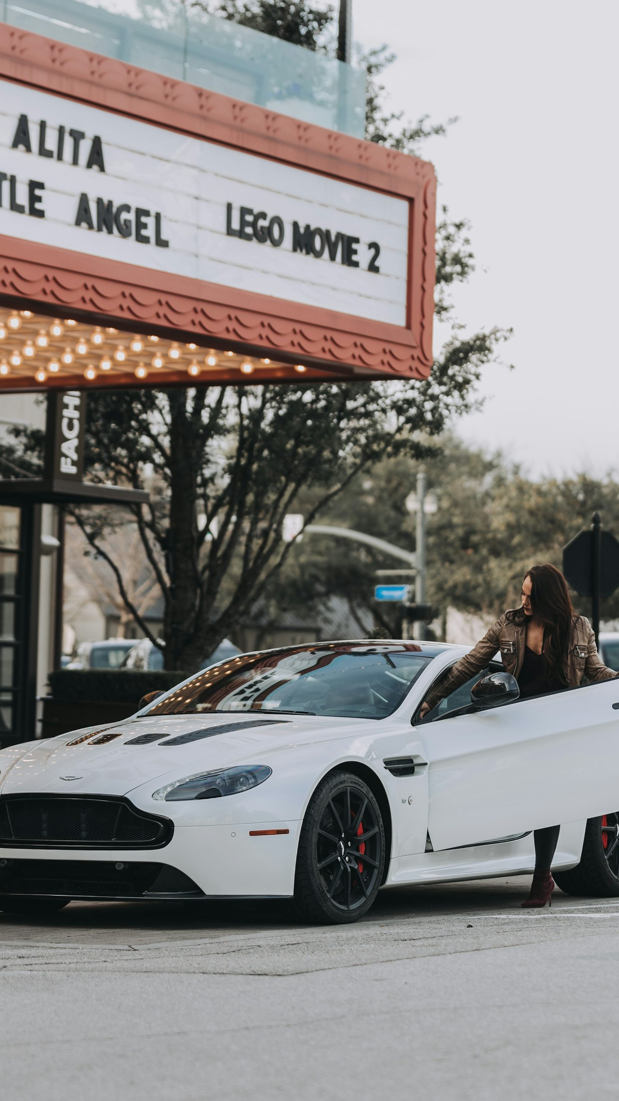 woman, sports car, theater, parking, exiting, evening, glamorous, city, nightlife, luxury