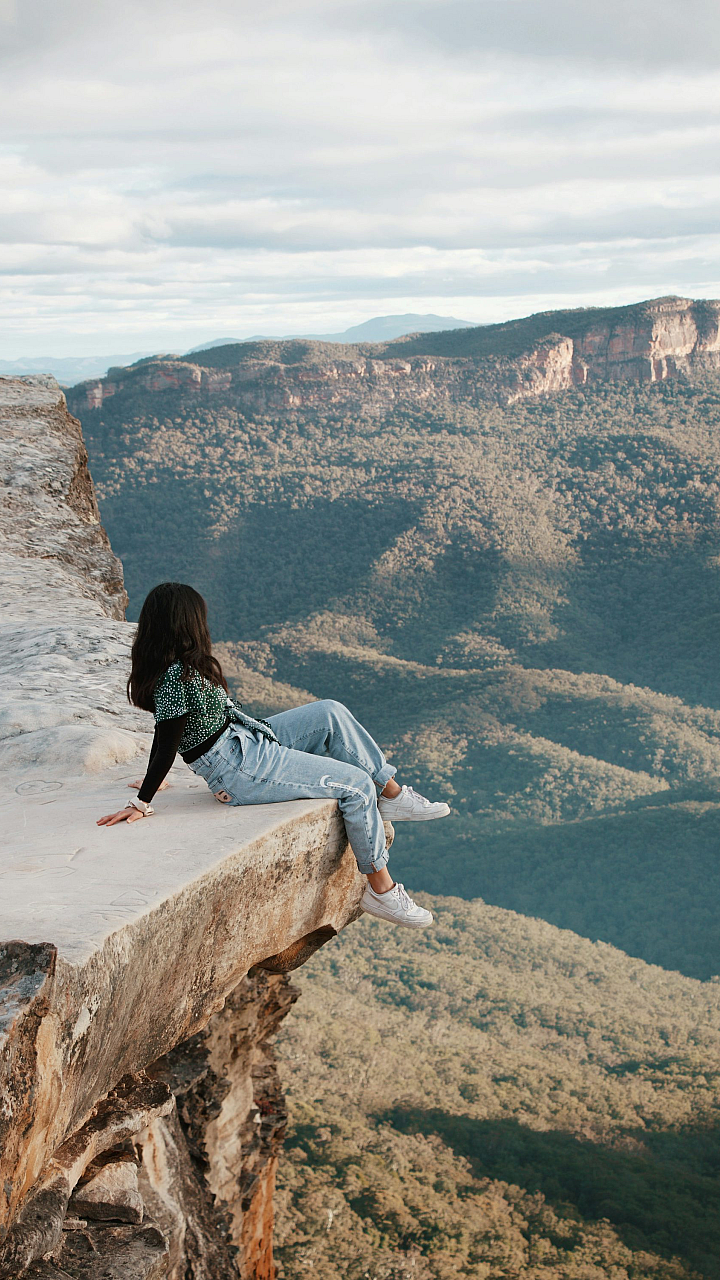 woman, denim jeans, blue jeans, rock formation, brown rock, sitting, daytime, outdoor, nature, wallpaper