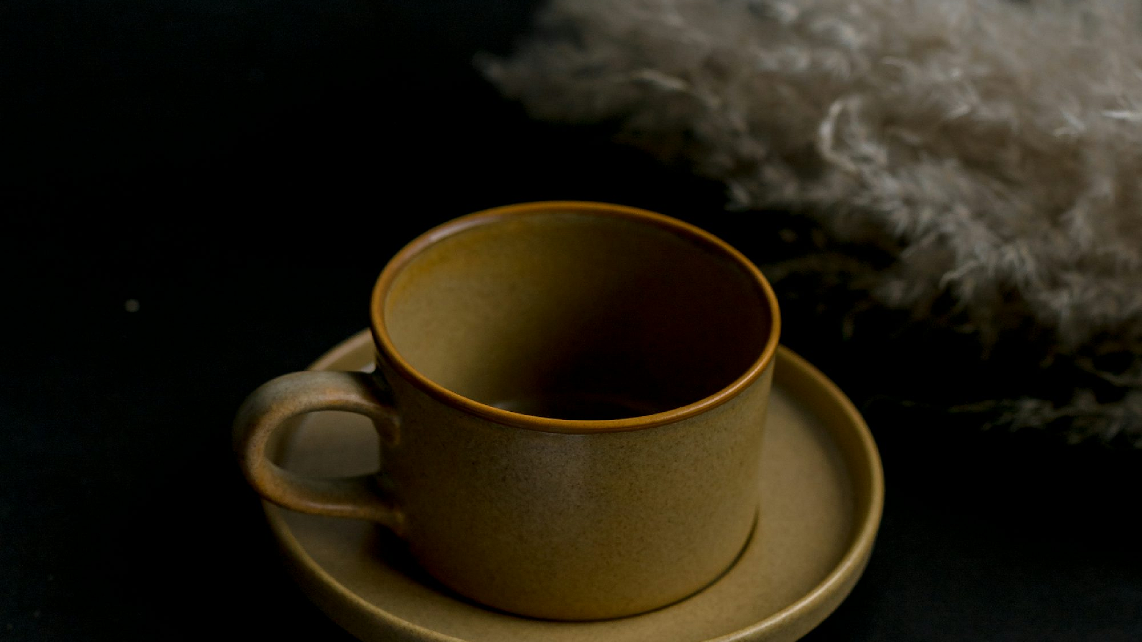 A simple yet elegant wallpaper featuring a yellow ceramic mug resting on a white textile background. Perfect for a calm and cozy aesthetic.