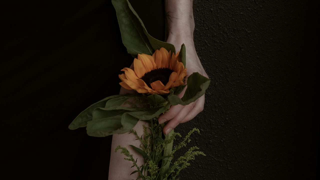 A serene image of a single yellow flower elegantly placed in a white ceramic vase. Perfect for a minimalist and calming desktop background.